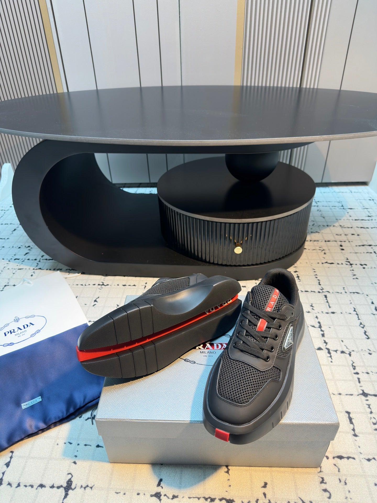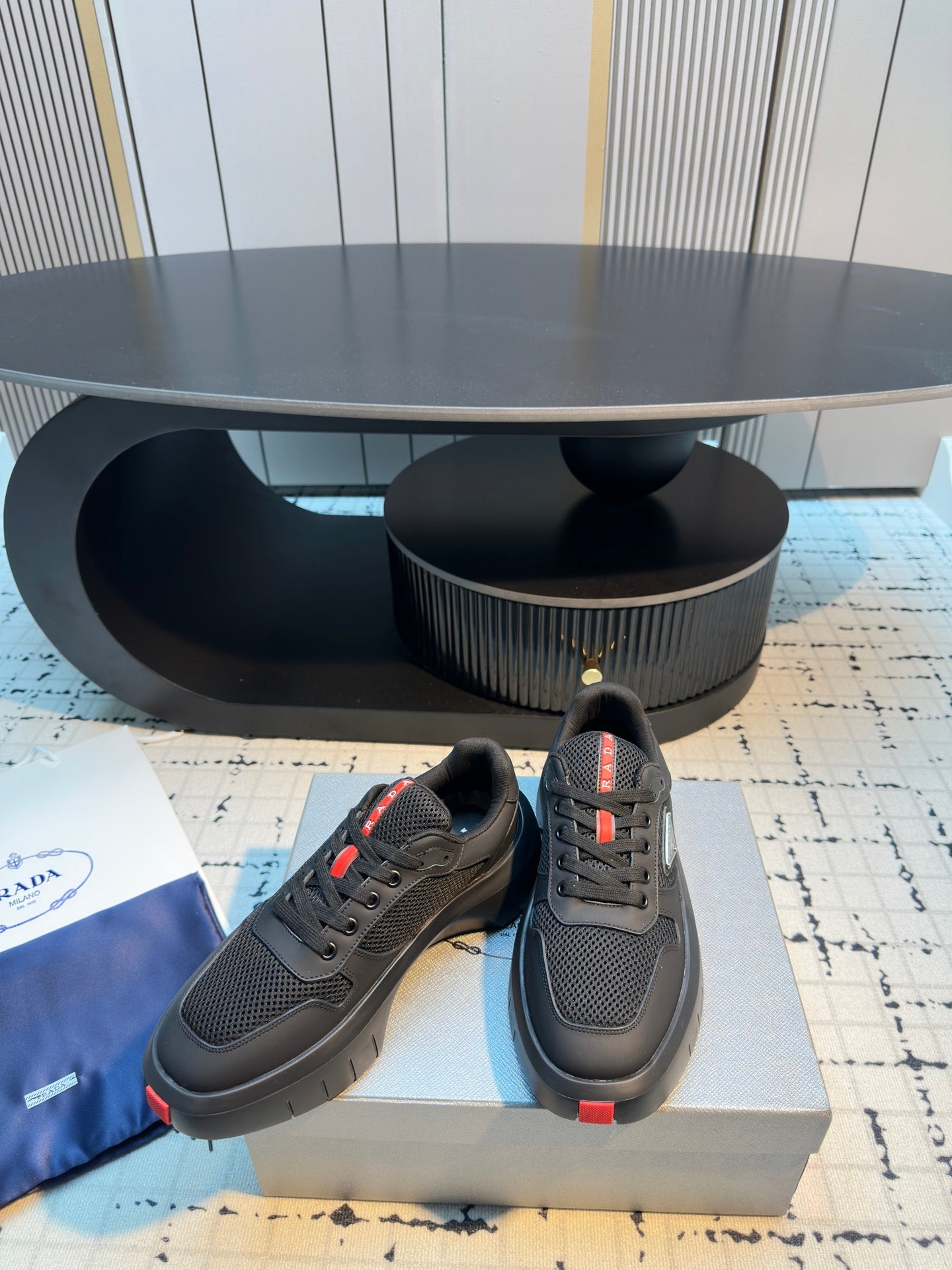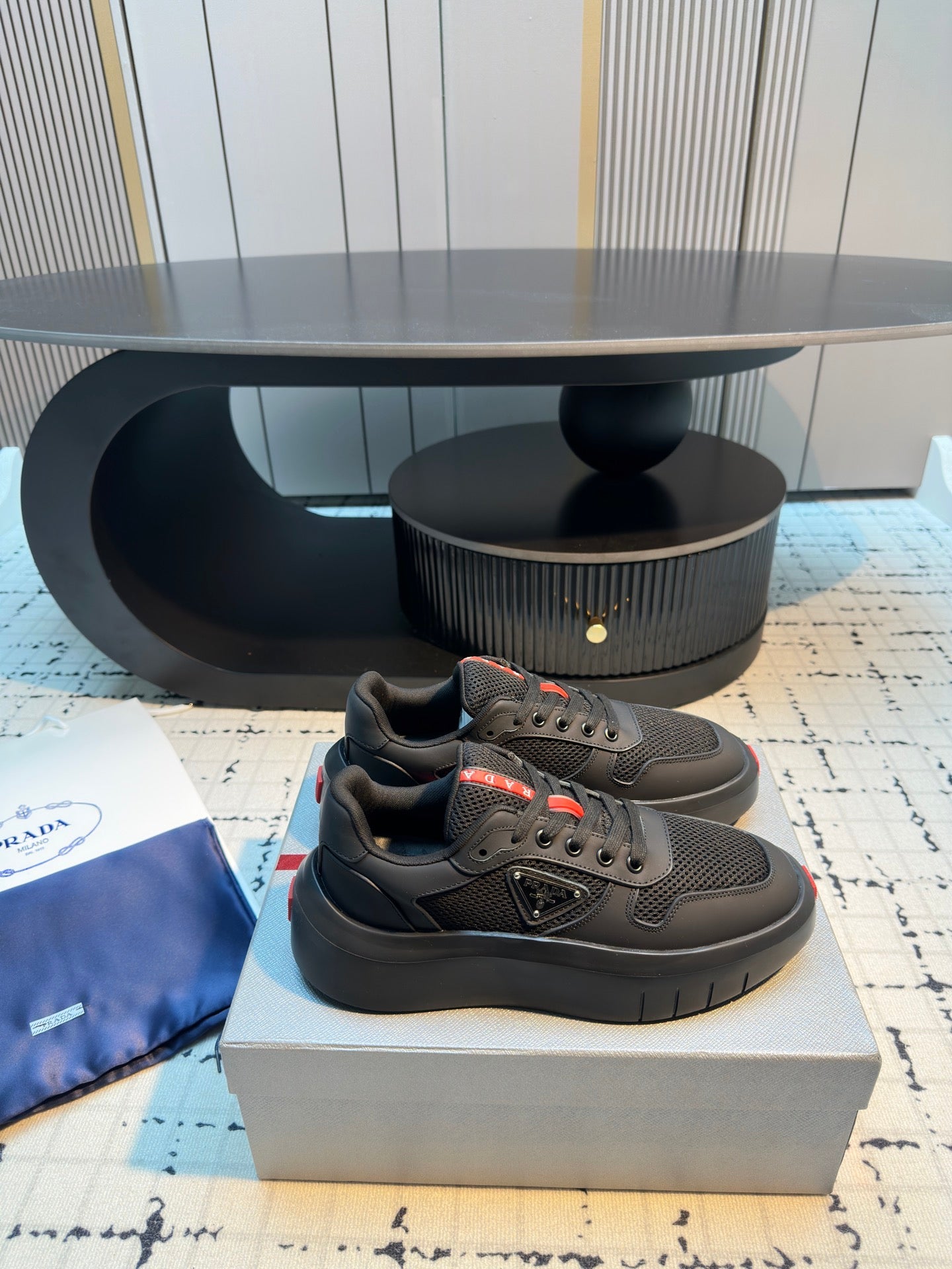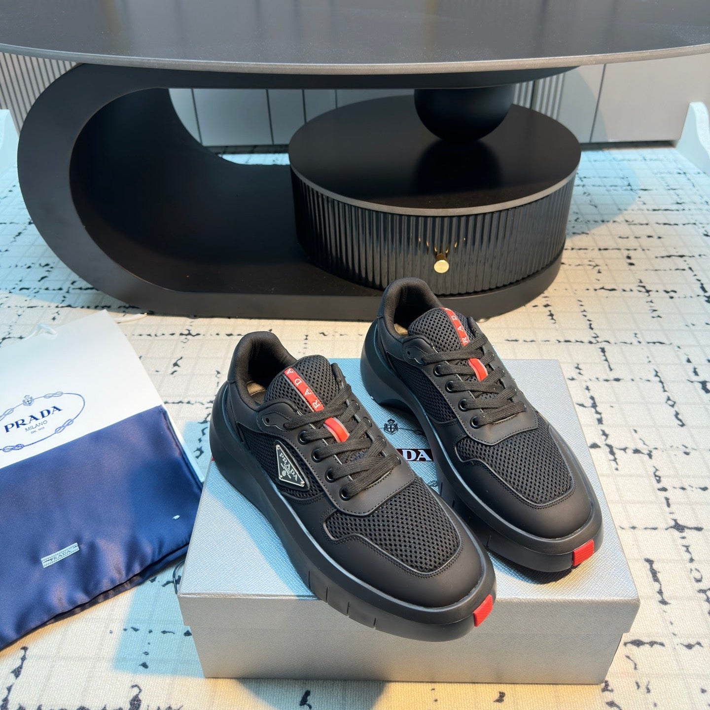 Prada 25s Platform Sneakers Black Cowhide 538424