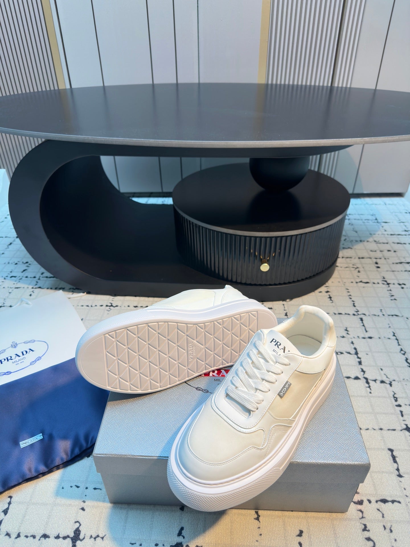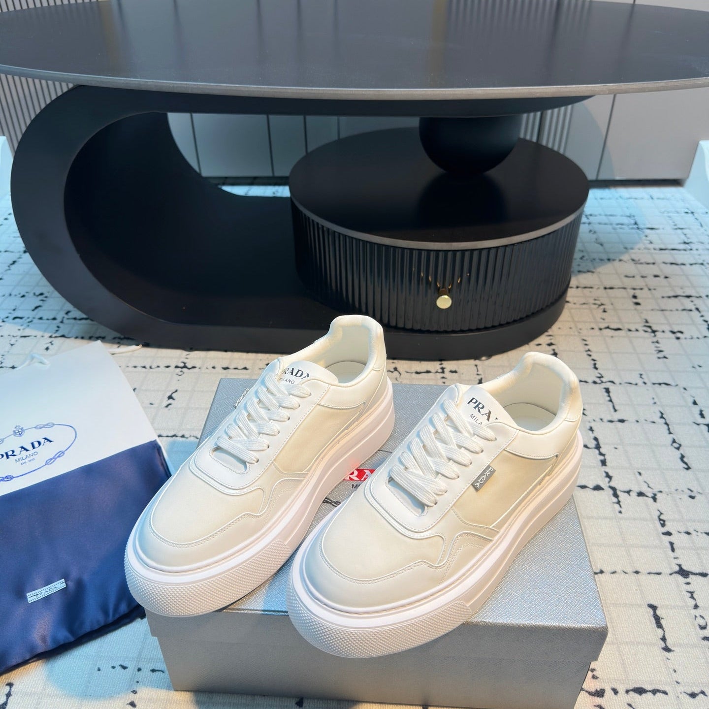 Prada 25s Platform Sneakers White Cowhide 538421