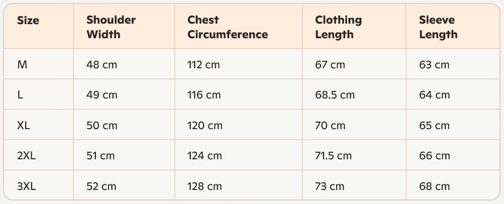 - Size : M , L, XL, XXL, 3XL
