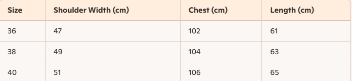 - Size : 36,38,40