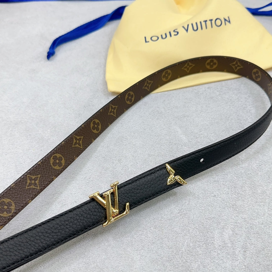 Pretty LV 20mm Reversible Belt Black Grained Calfskin