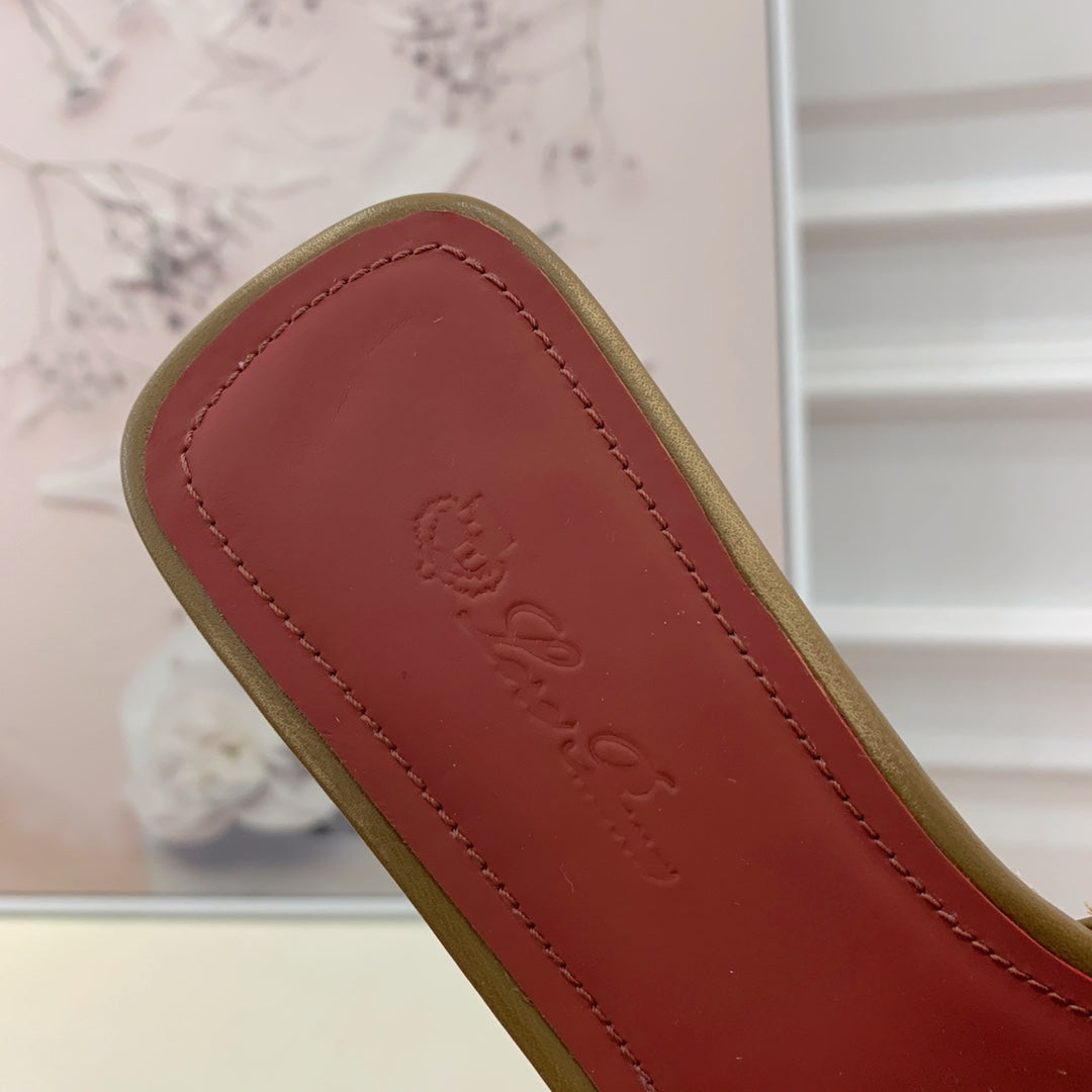 Quare Toe Sprightly Charms Mule Olive Marron Calfskin
