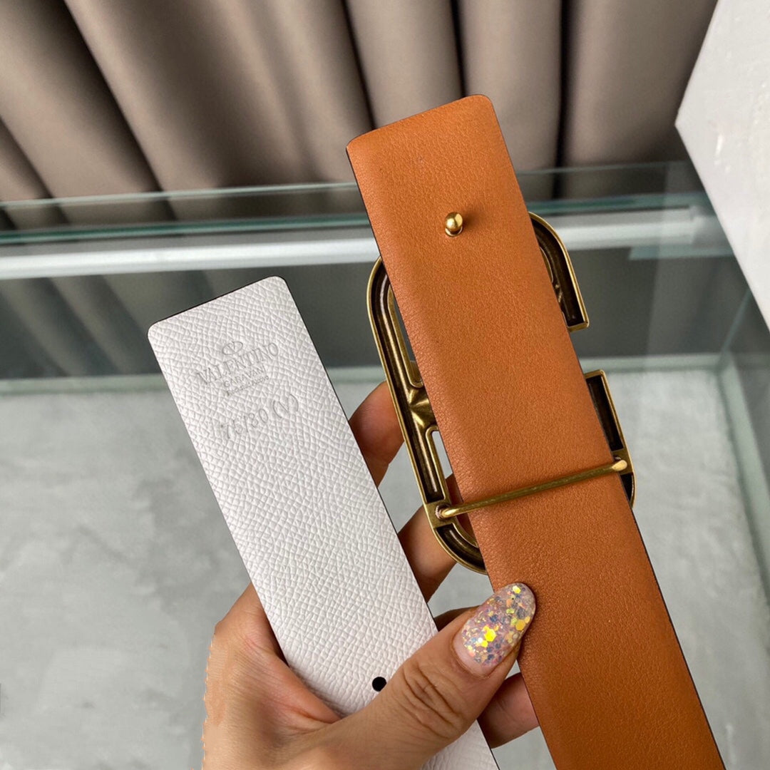 REVERSIBLE VLOGO SIGNATURE BELT IN GLOSSY TAN WHITE CALFSKIN GHW 40 MM