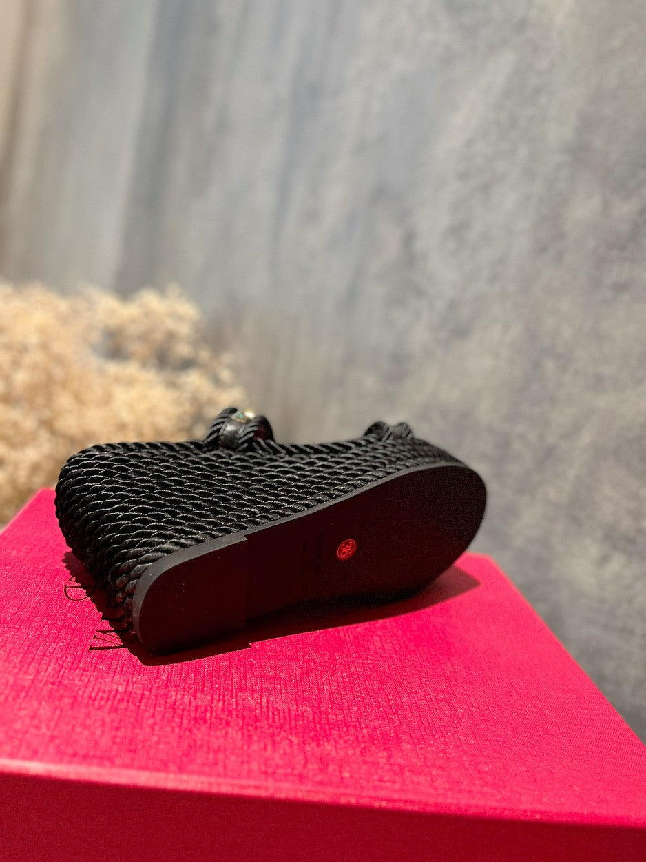ROCKSTUD LAMINATED NAPPA WEDGE SANDAL 100 MM BLACK