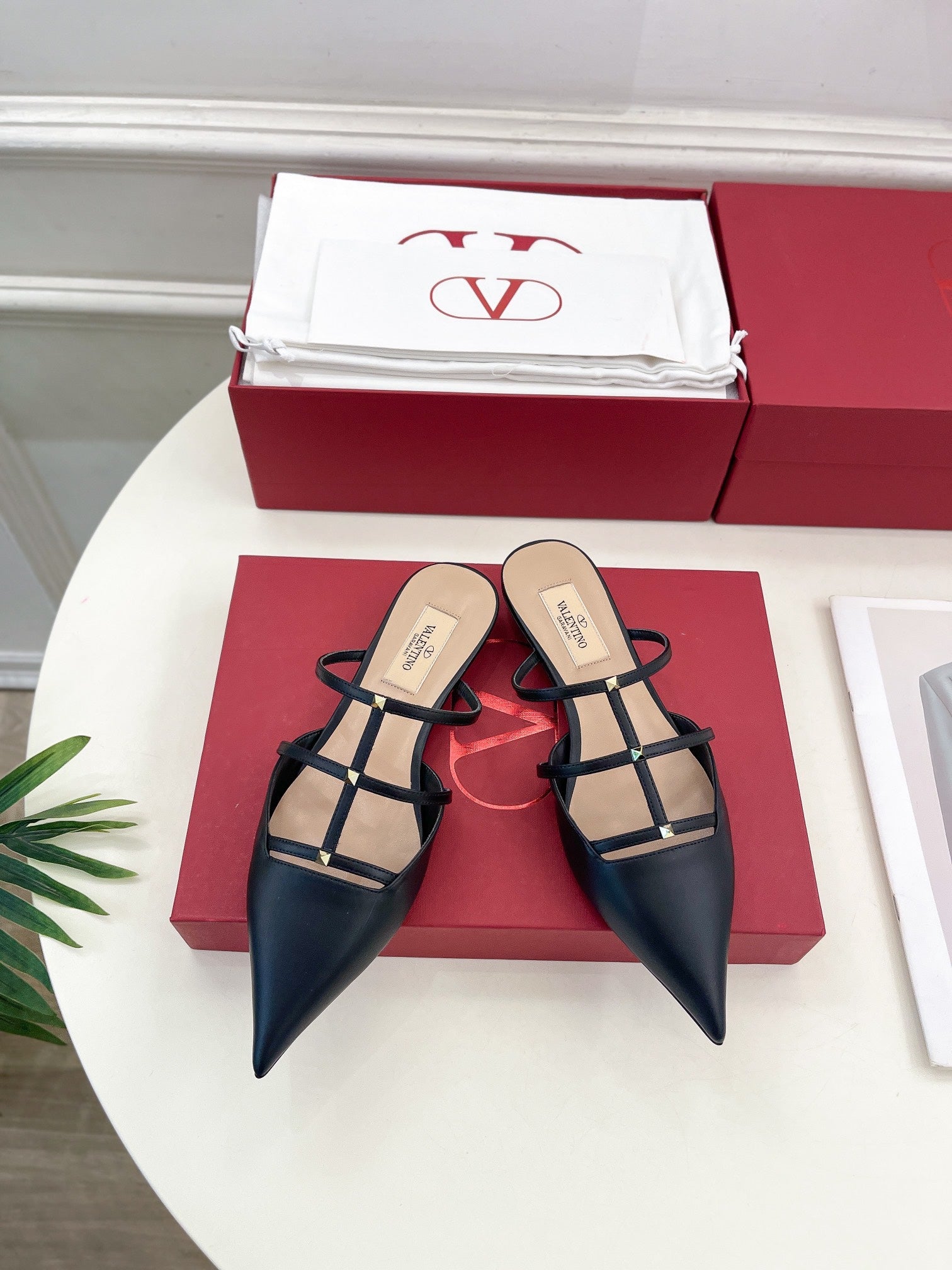 Rockstud Wispy Black Calfskin Mule 20mm