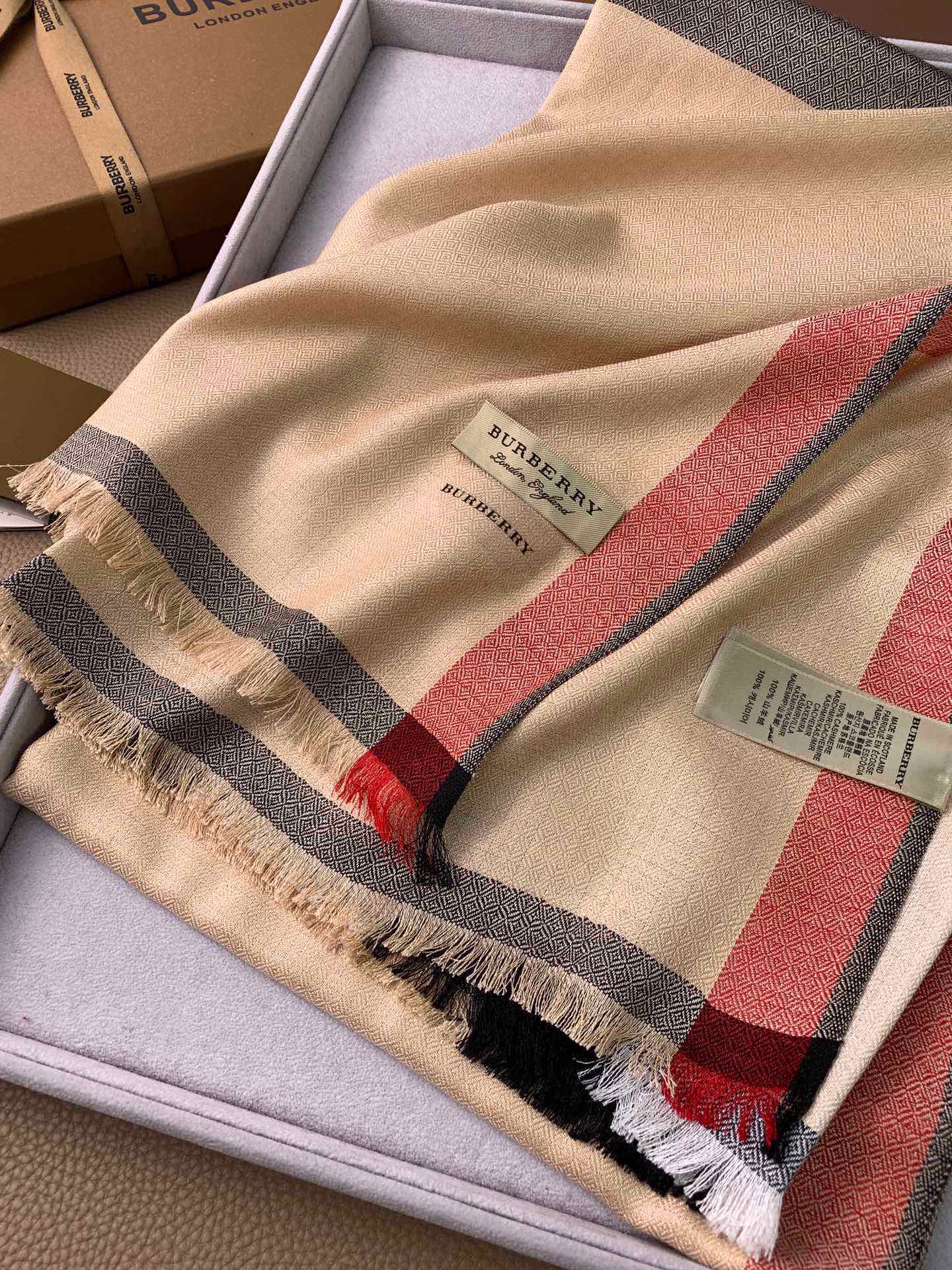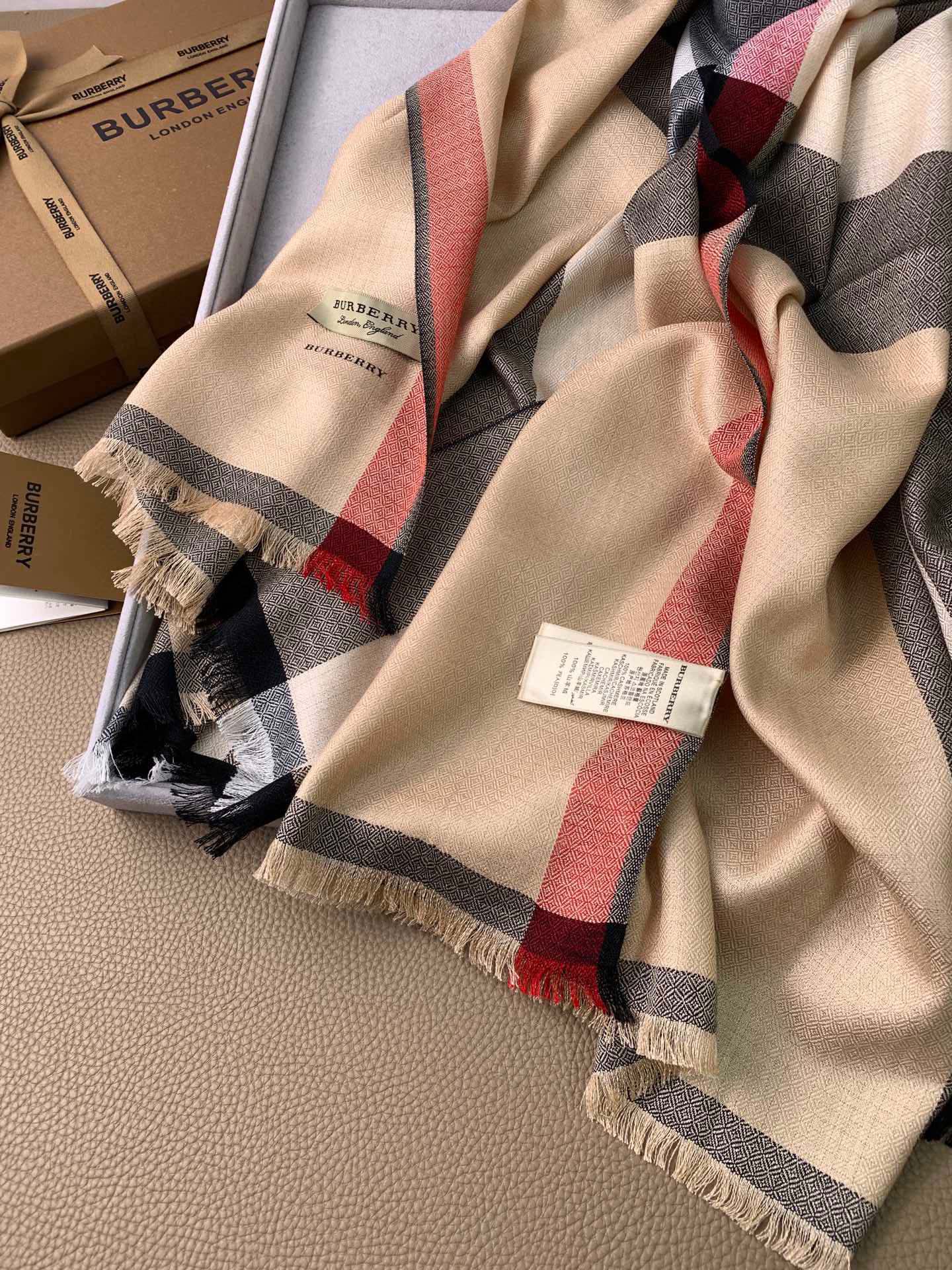 SCARF 200 CM IN CAMEL BEIGE MIX BLACK CASHMERE 394728