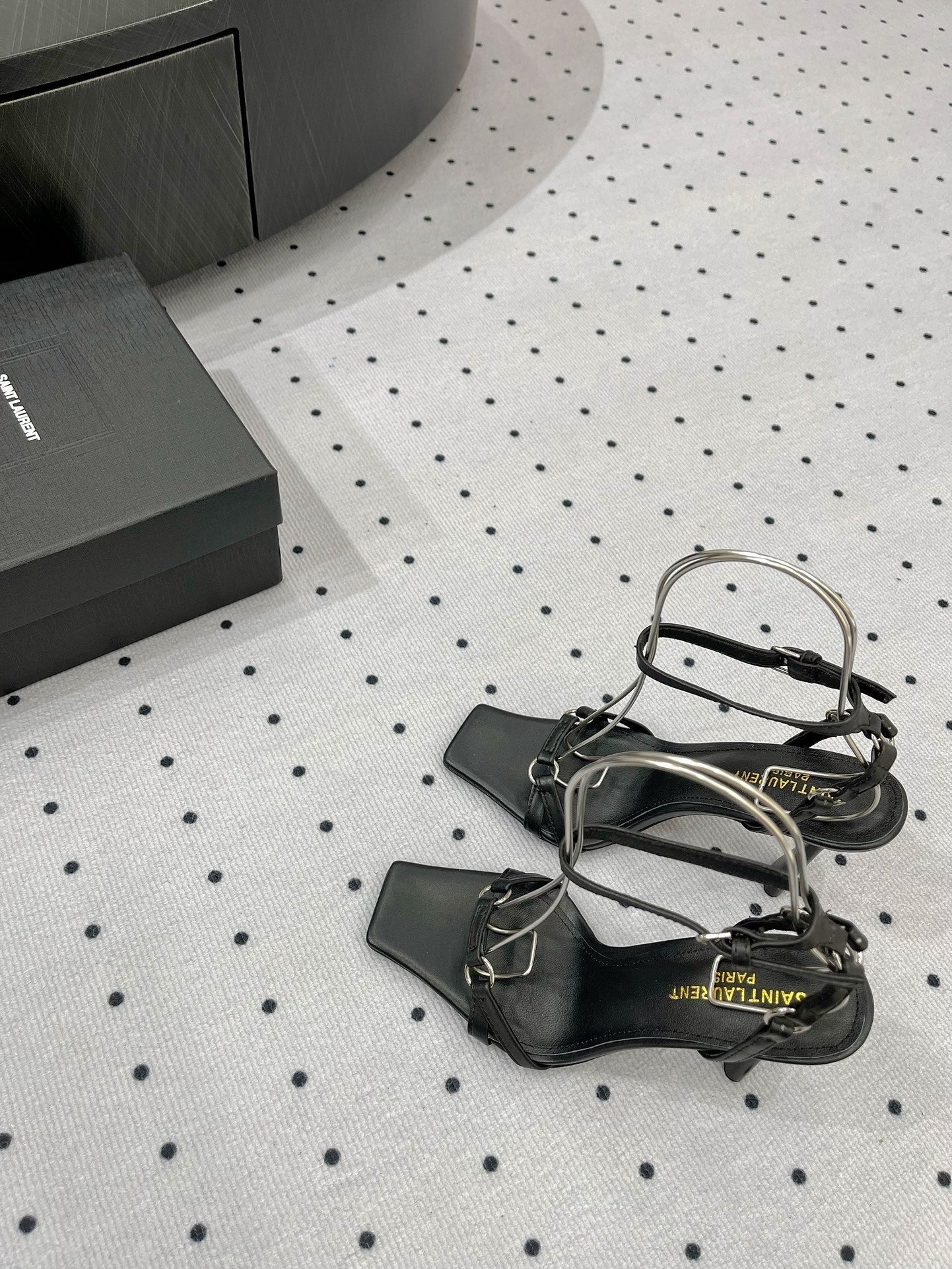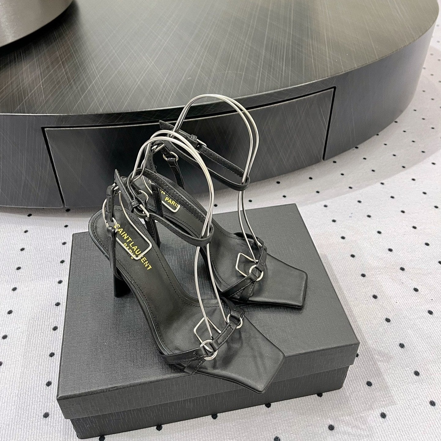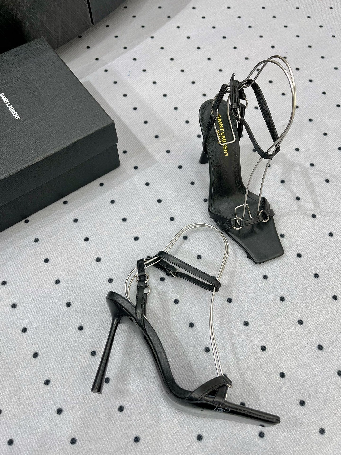 SL ANKLE-BUCKLE HEELED SANDALS BLACK CALFSKIN