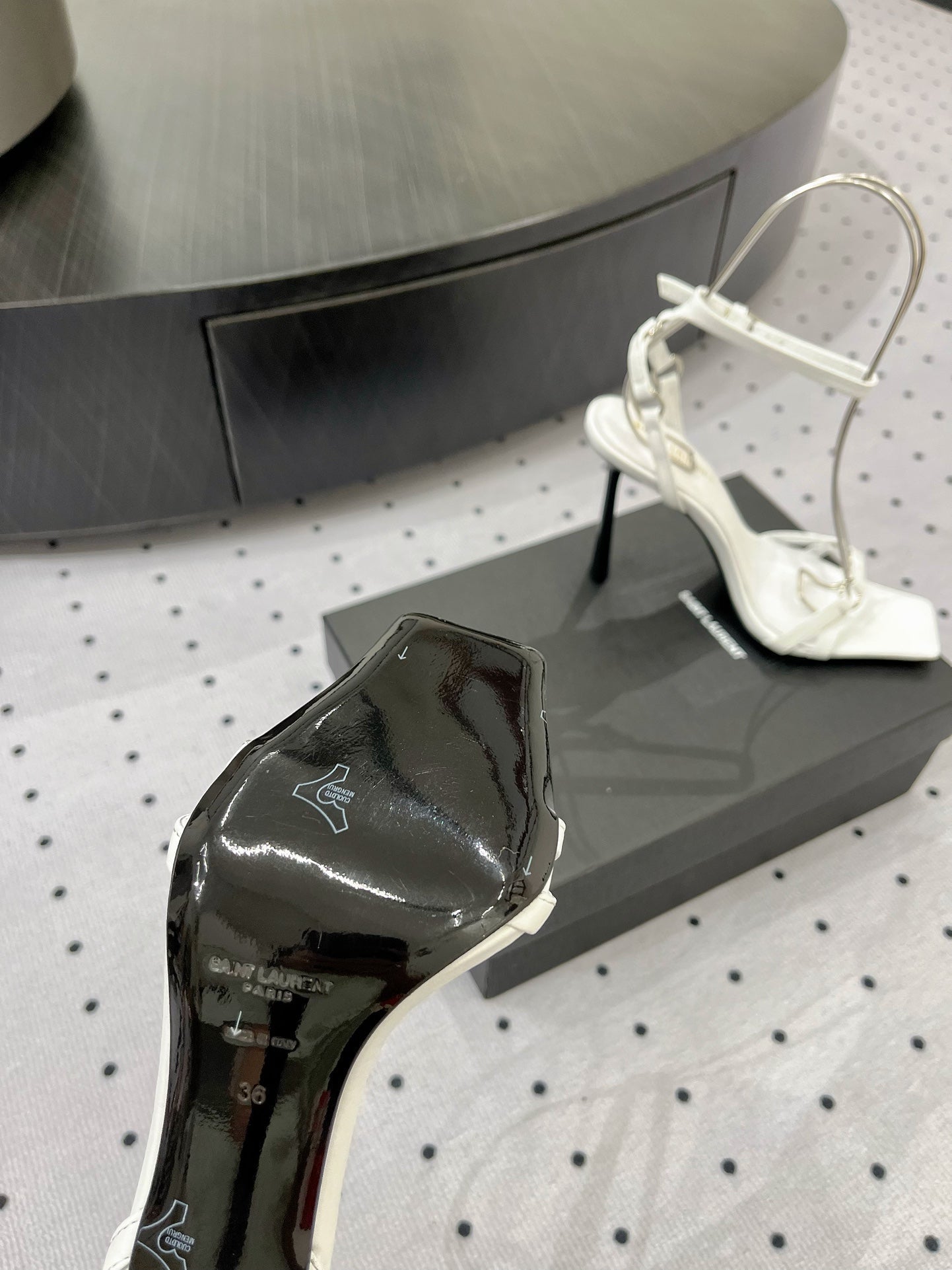 SL ANKLE-BUCKLE HEELED SANDALS WHITE CALFSKIN