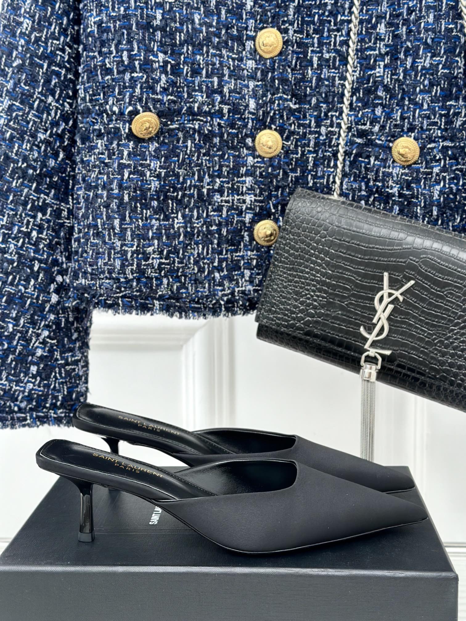 SL BARBARA MULES 55 BLACK SATIN CREPE