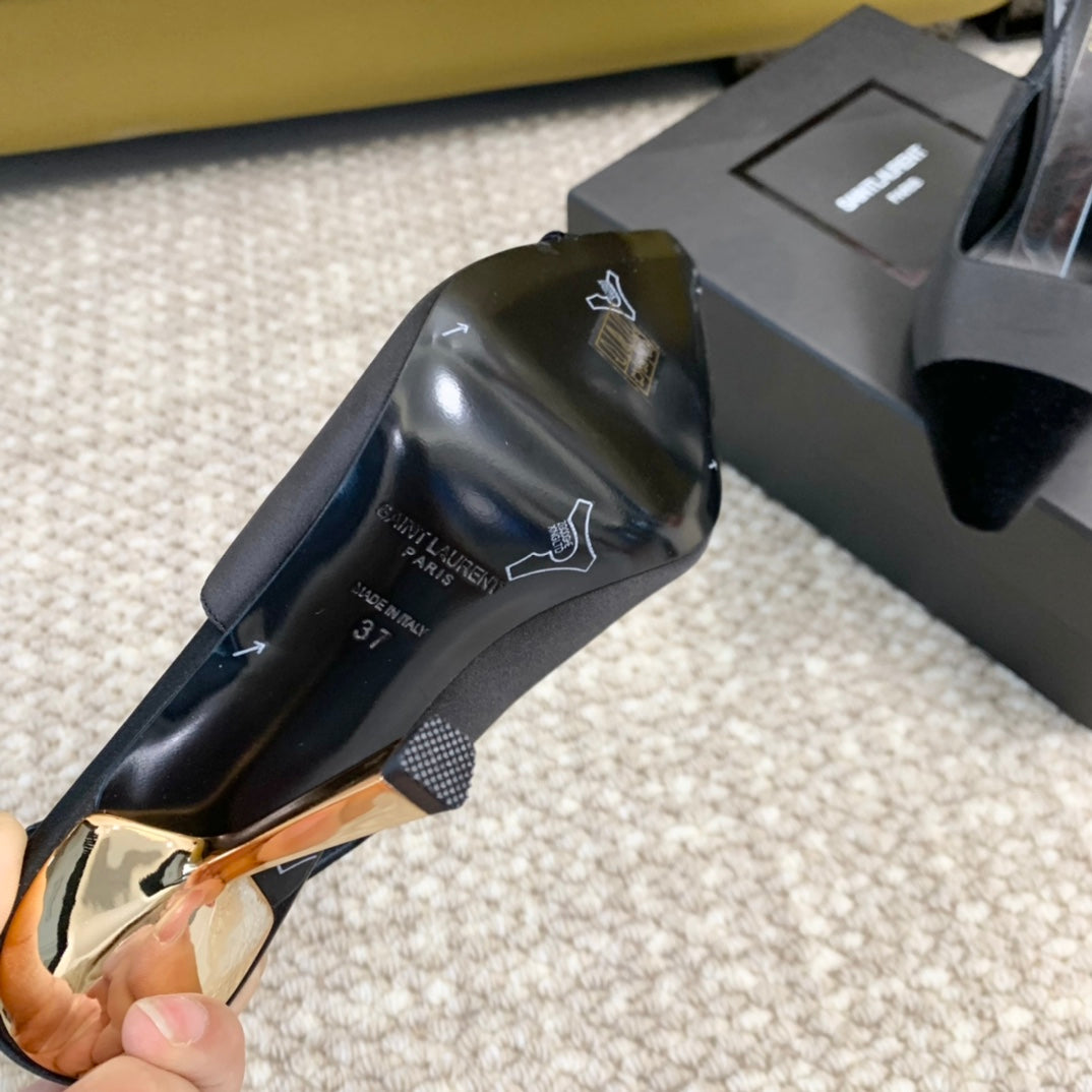 SL CAP-TOE SLINGBACKS BLACK SATIN AND VELVET