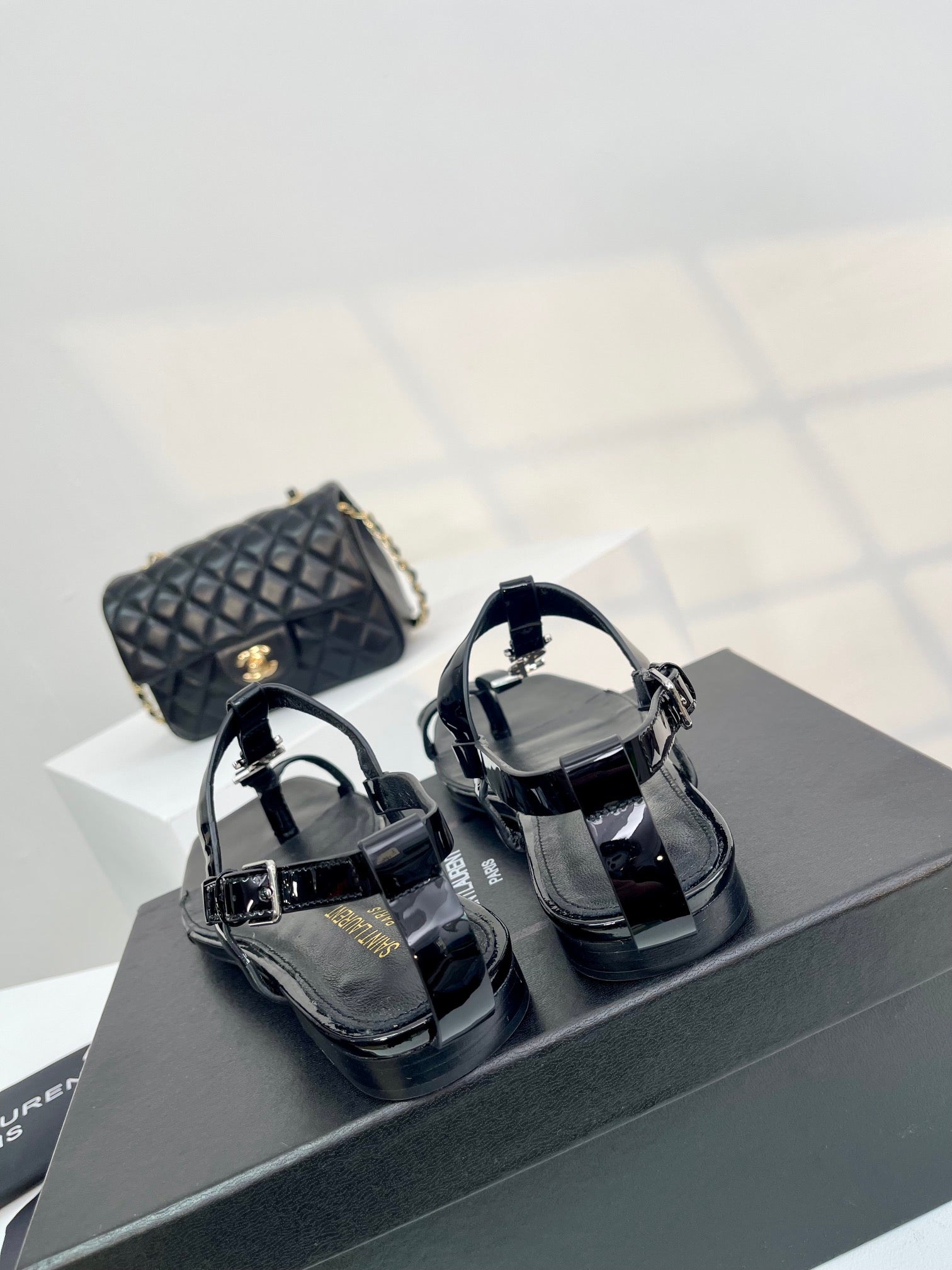SL CASSANDRA ONE SANDAL FLAT BLACK CALFSKIN