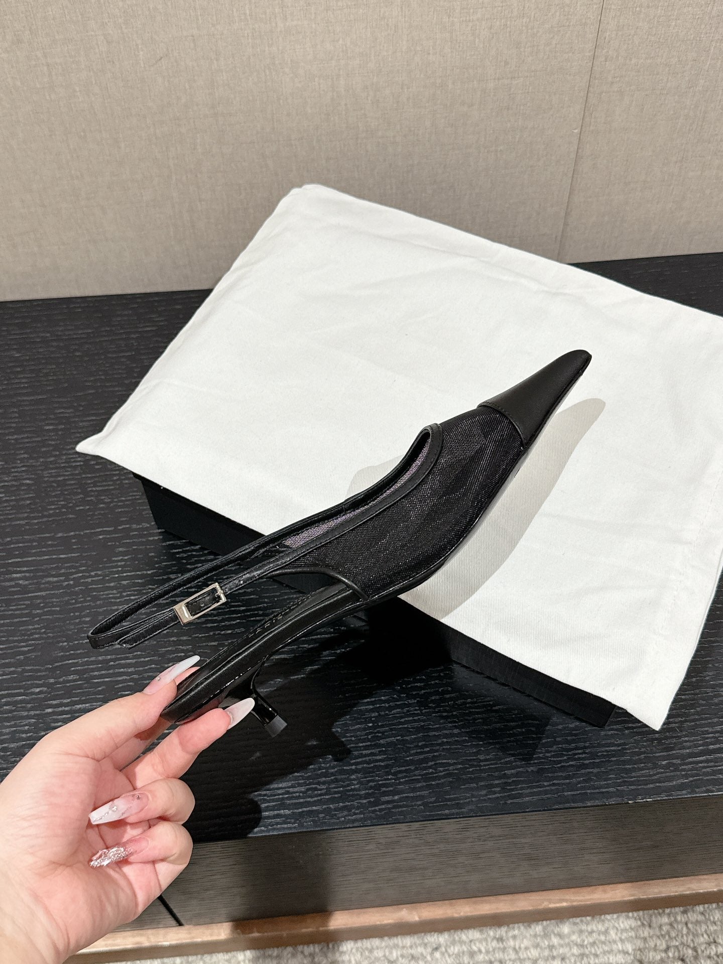 SL CHERISH SLINGBACK 45 BLACK MESH AND CALFSKIN