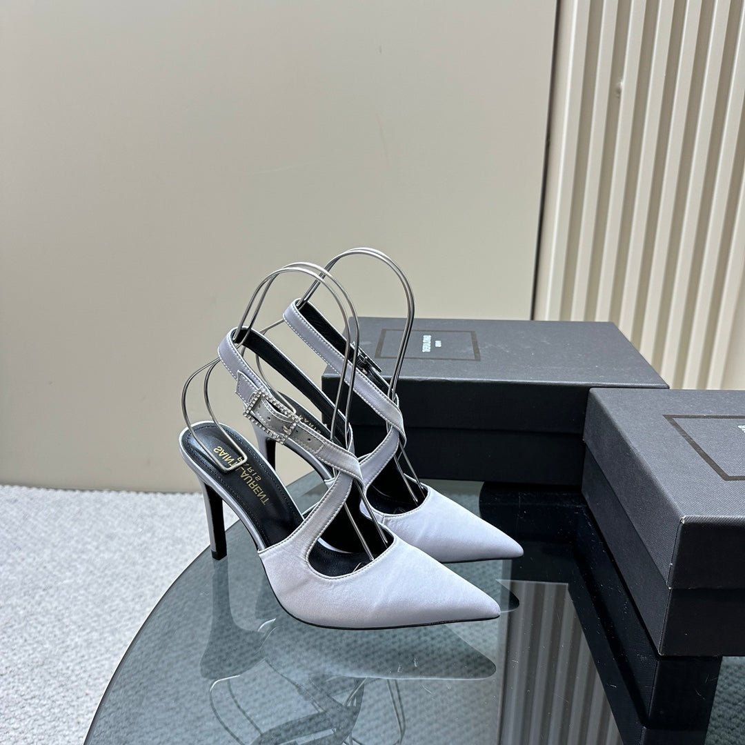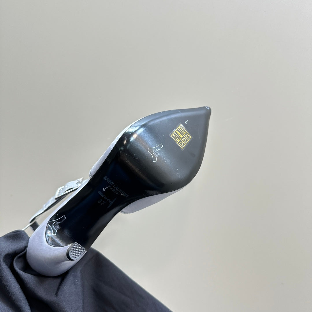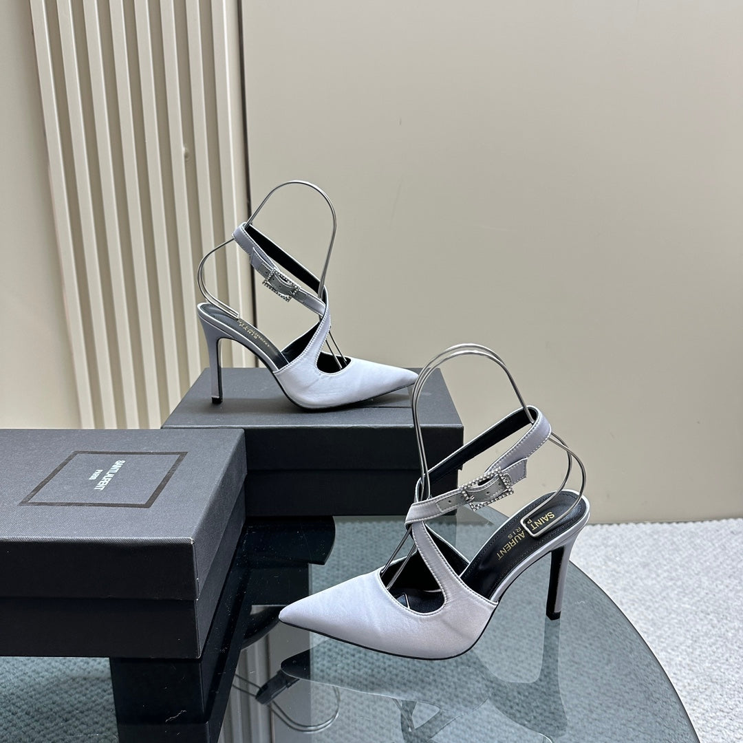 SL CROSS-STRAP SLINGBACK LIGHT BLUE SATIN