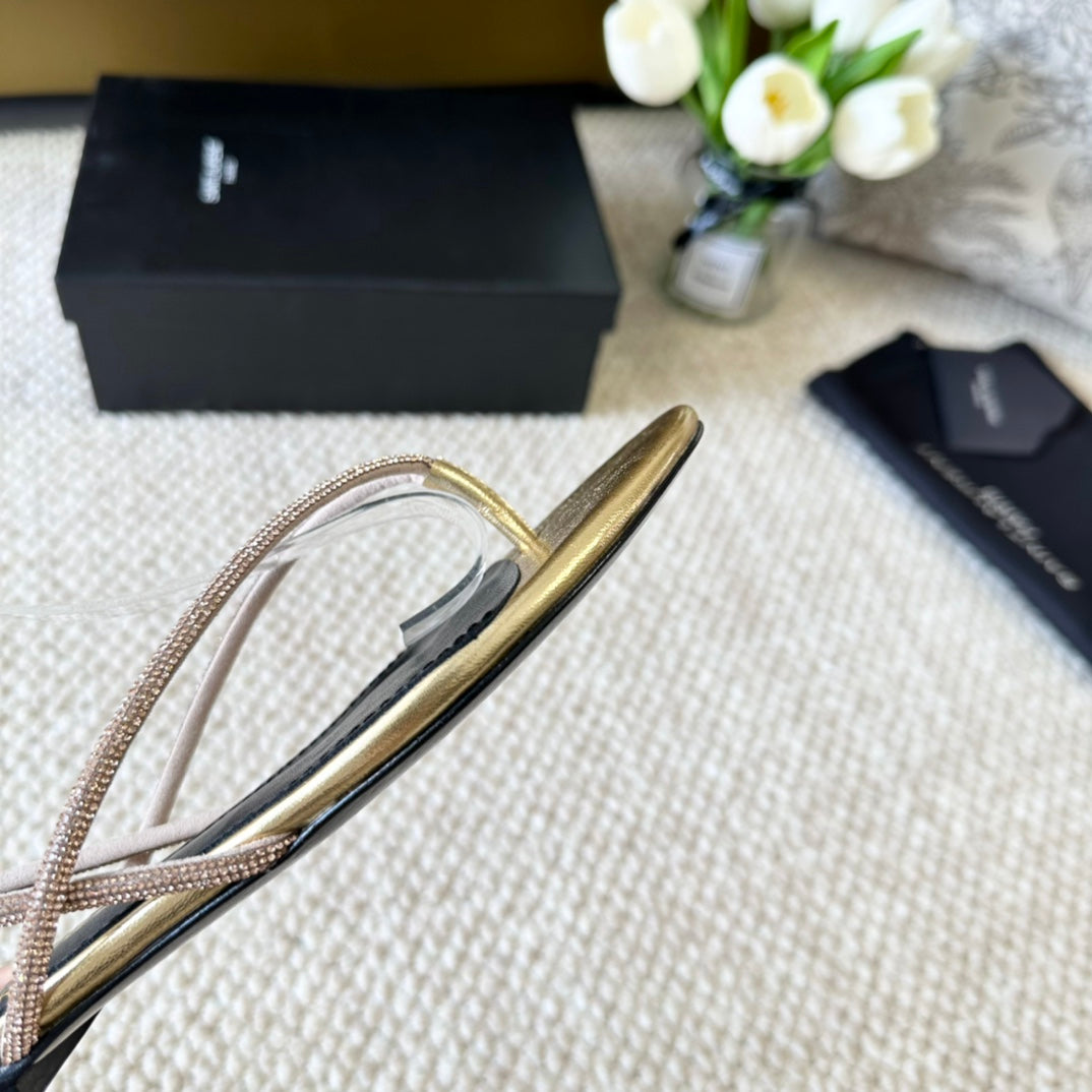 SL CRYSTAL FLAT SANDALS METALLIC GOLD CALFSKIN