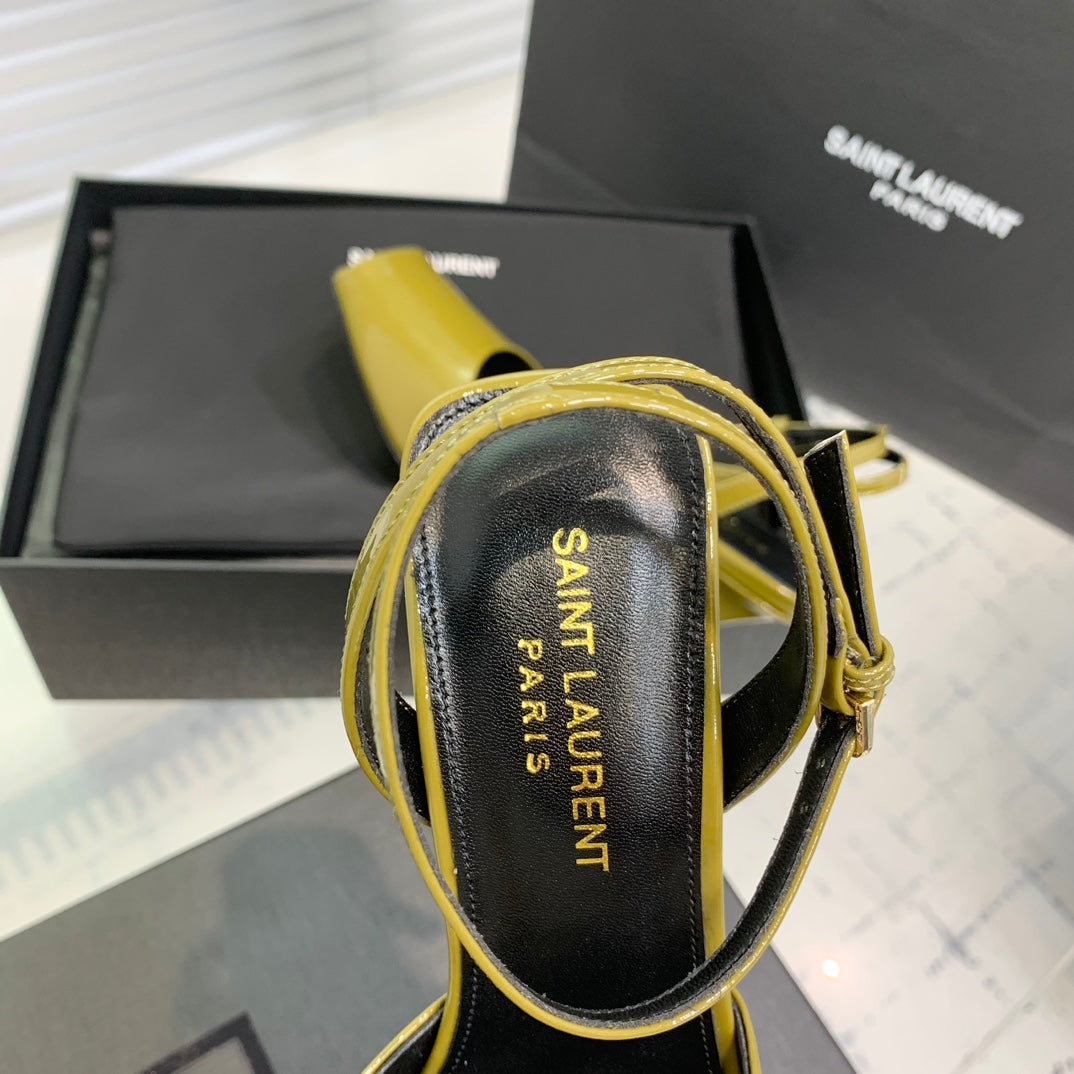 SL FISH MOUTH SANDAL PUMP LEMON POLISHED CALFSKIN