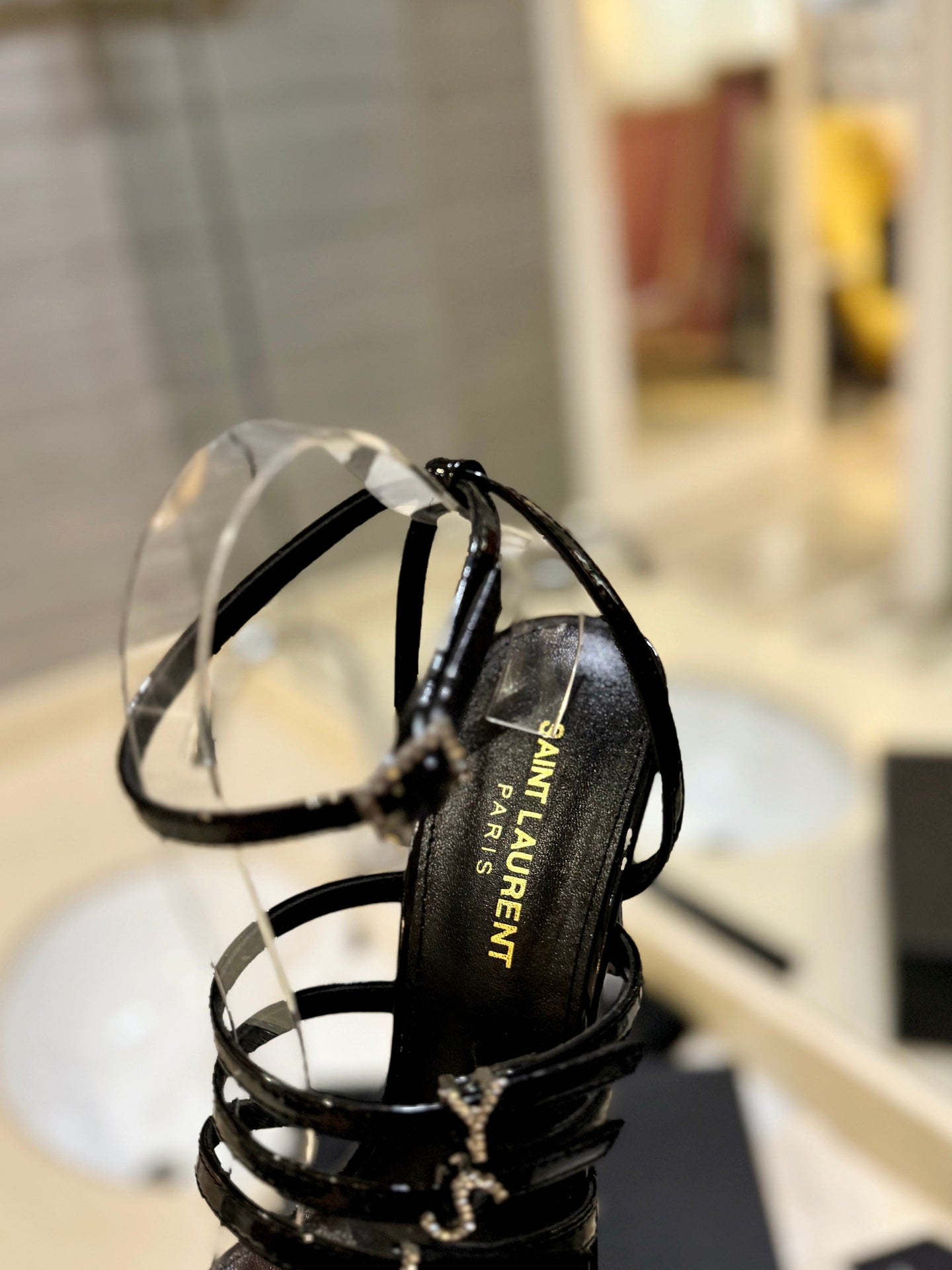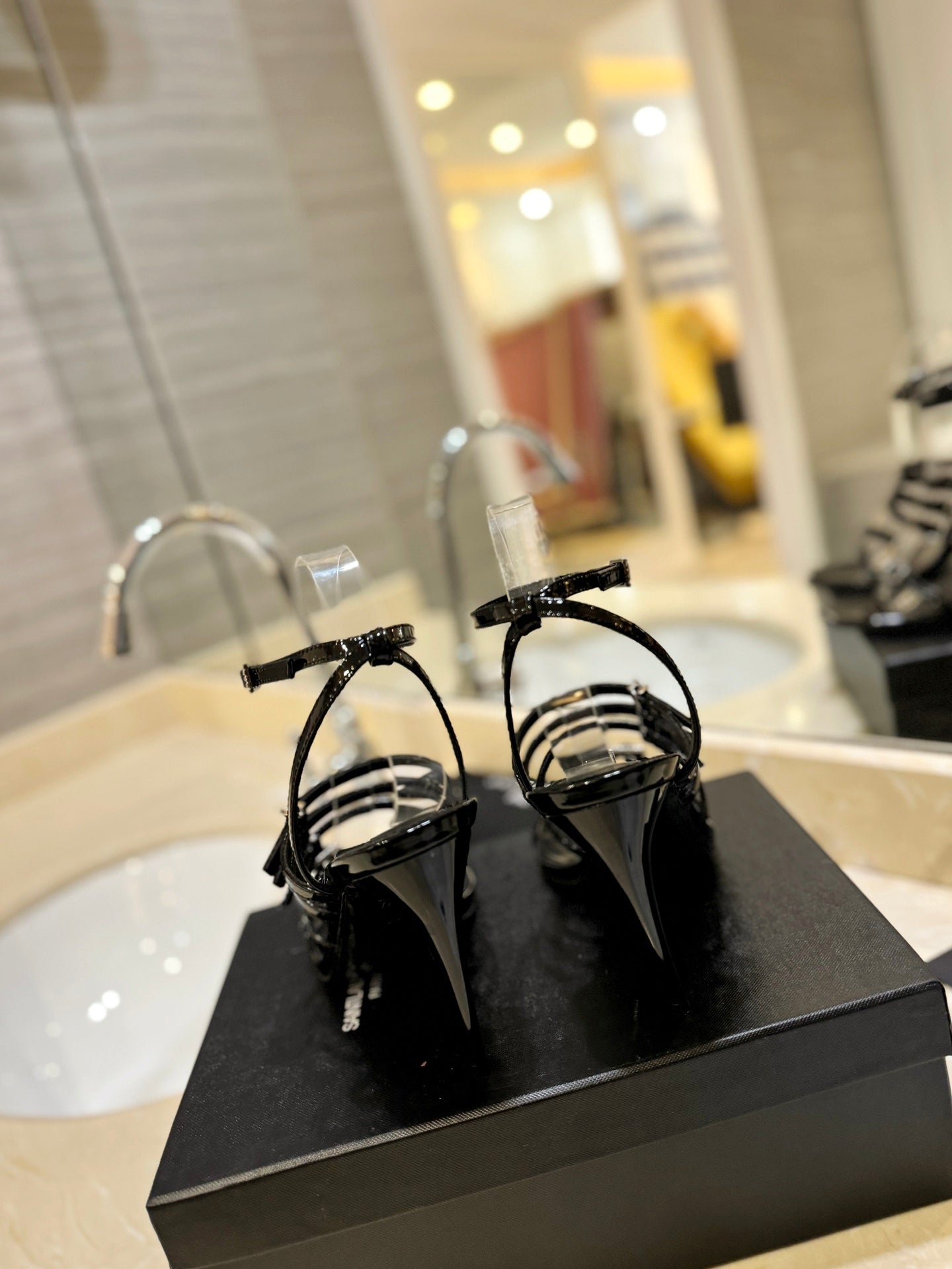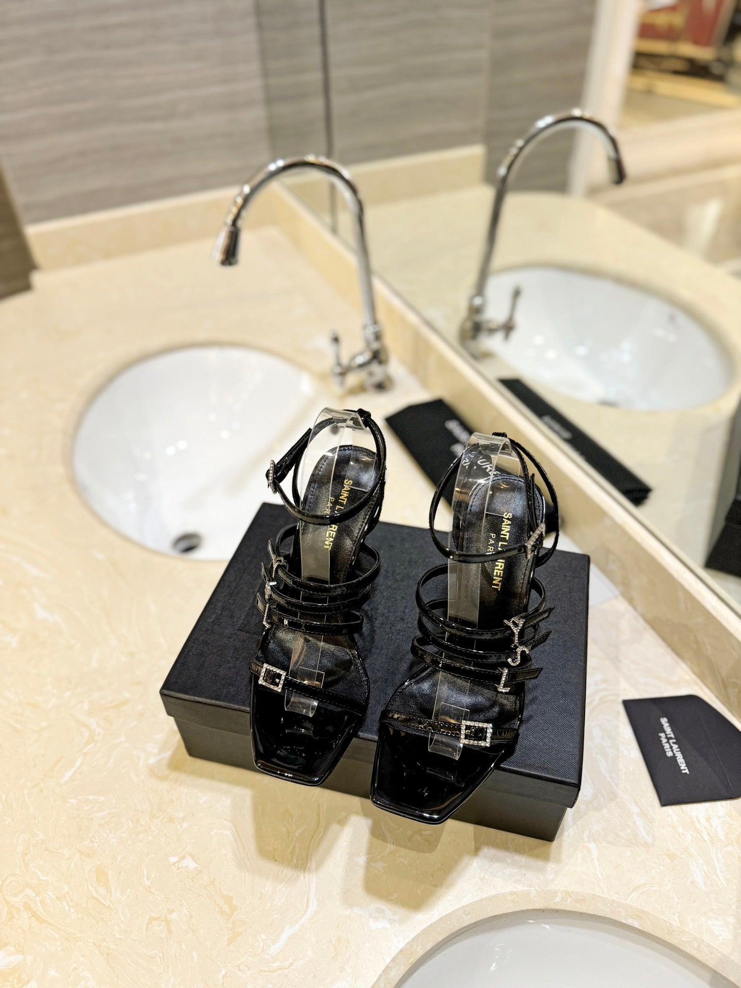 SL JERRY HEELED SANDALS BLACK POLISHED CALFSKIN