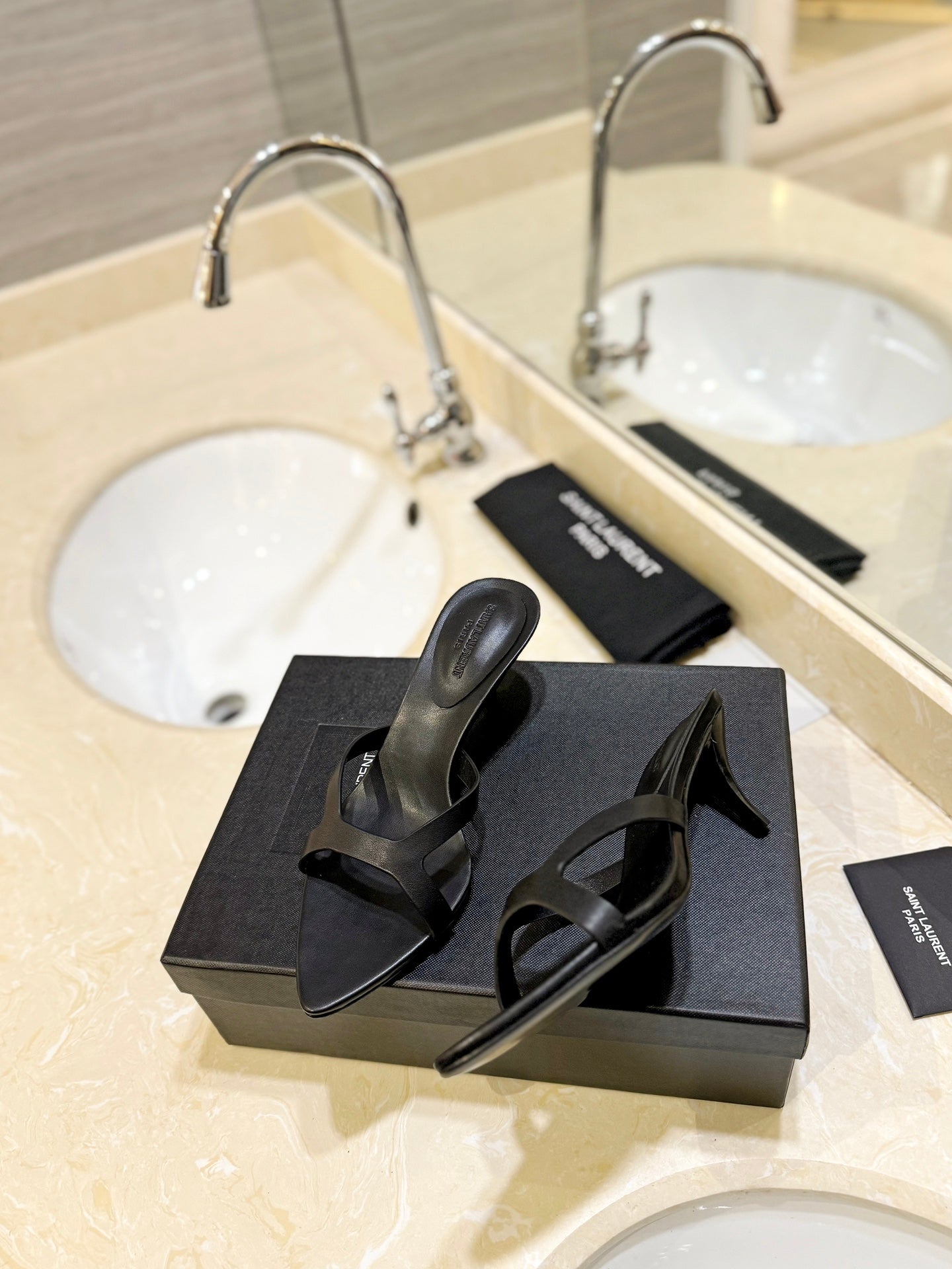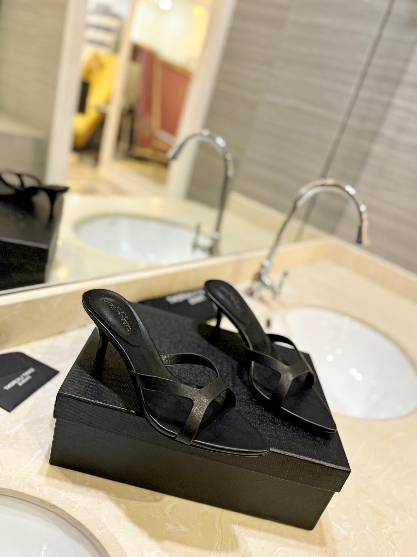 SL OPEN-TOES HIGH HEELS SLIPPER BLACK CALFSKIN