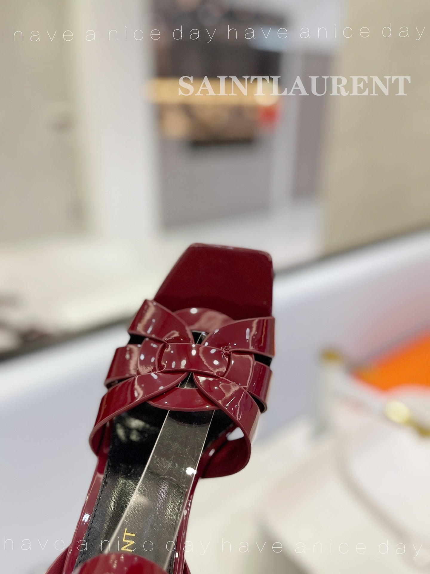 SL TRIBUTE FLATFORM SANDALS GLOSSY BERRY CALFSKIN