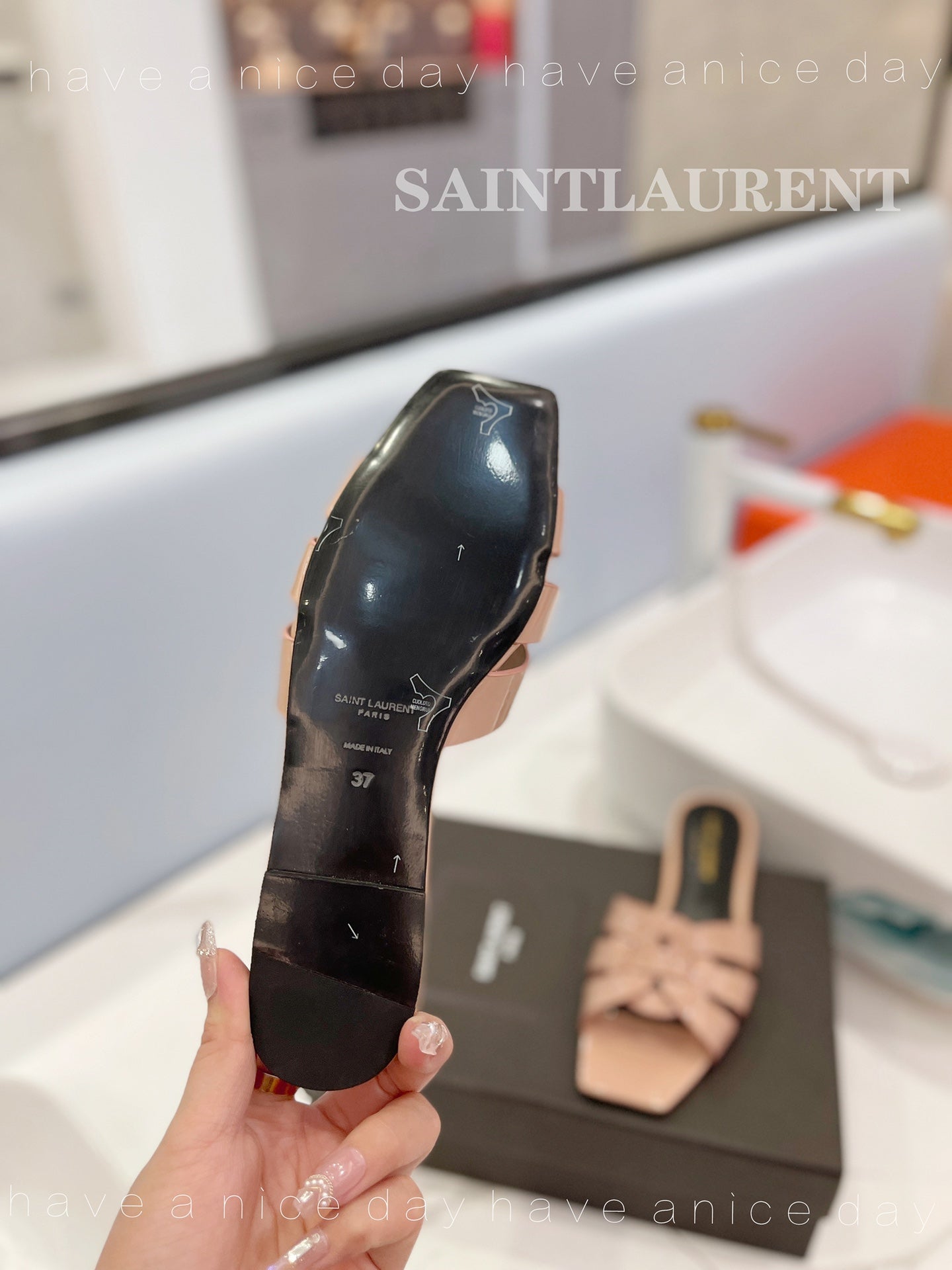 SL TRIBUTE SLIPPERS GLOSSY PINK NUDE CALFSKIN