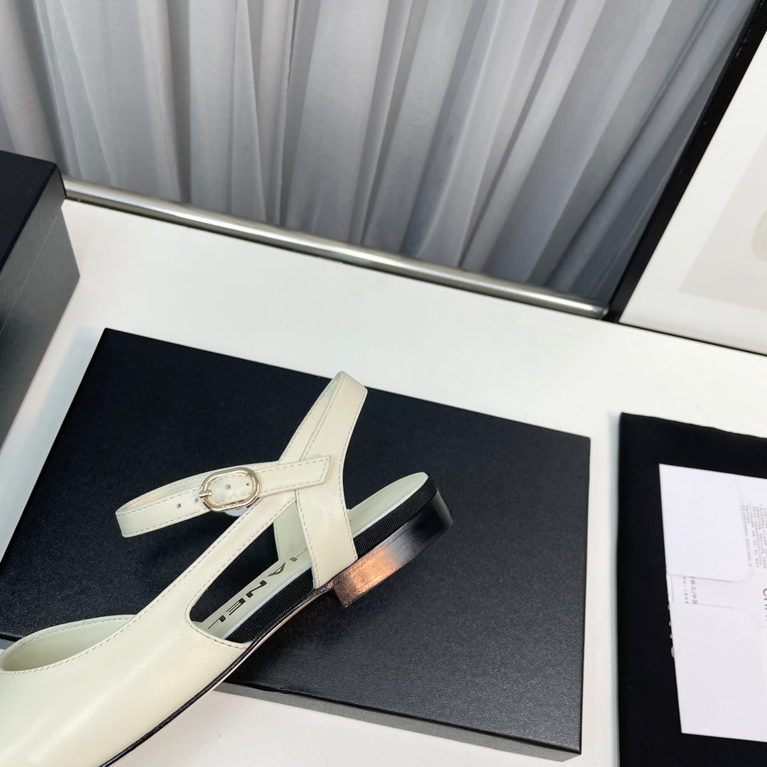 slingback cream lambskin black leather chain grosgrain