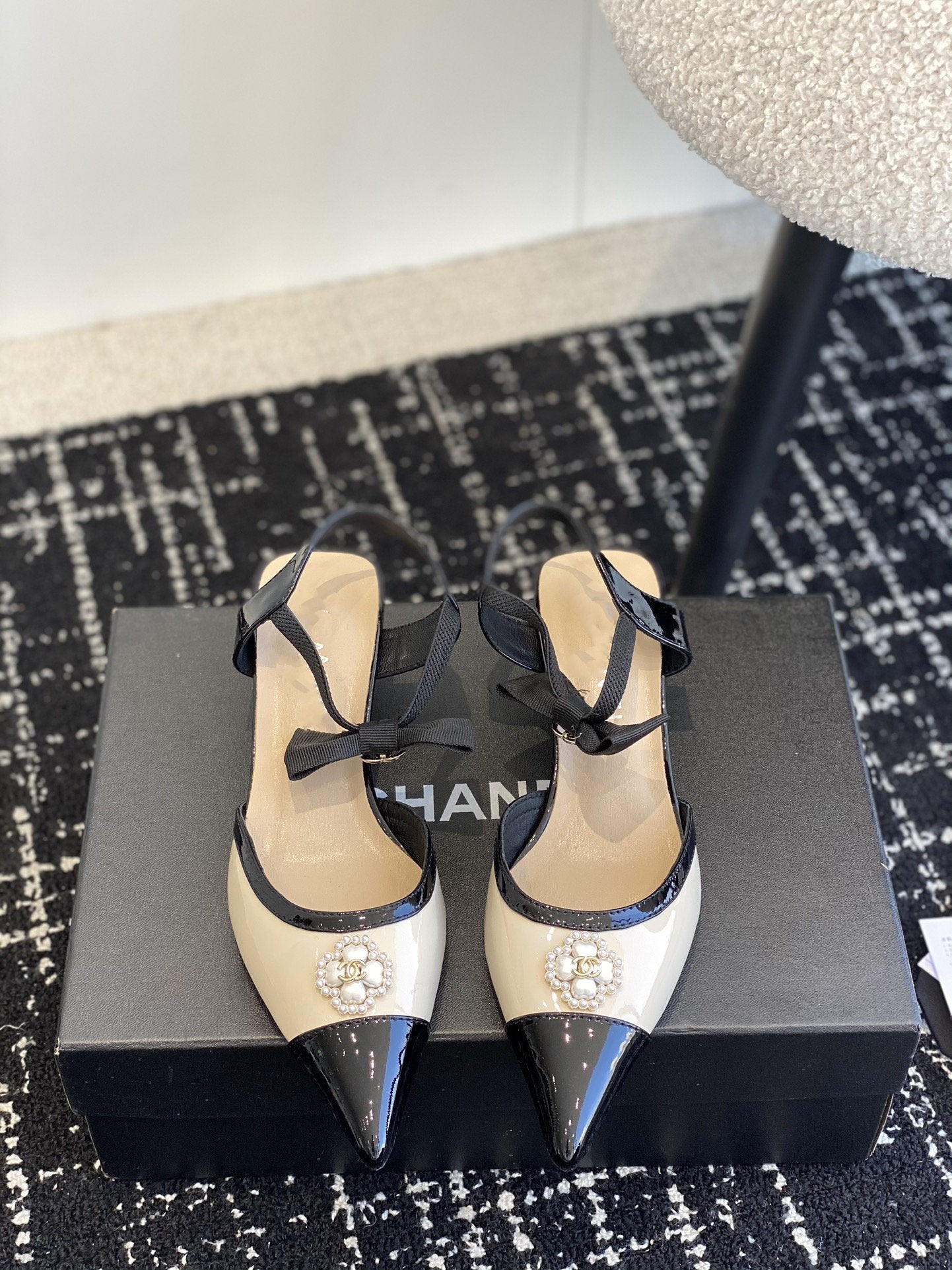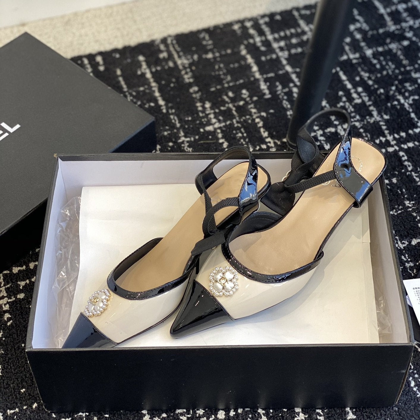 slingbacks 45 beige black patent calfskin