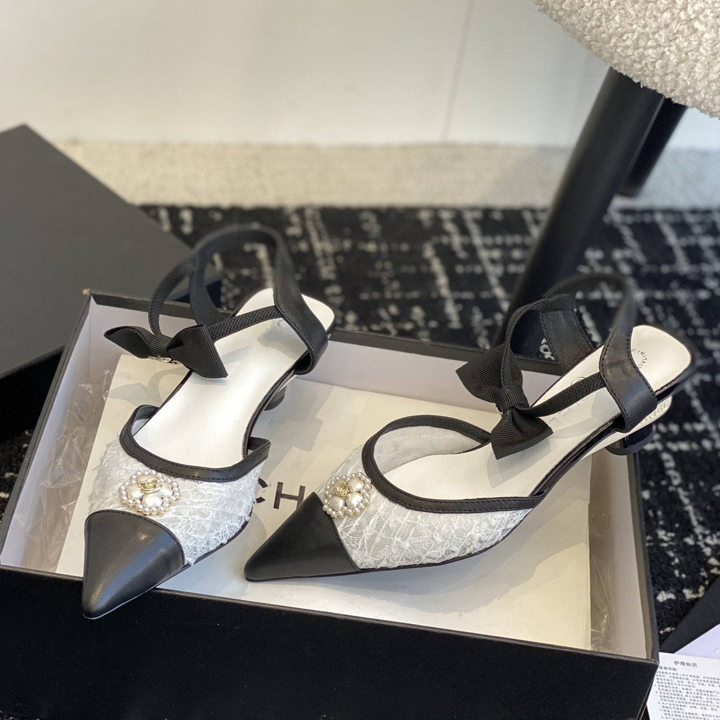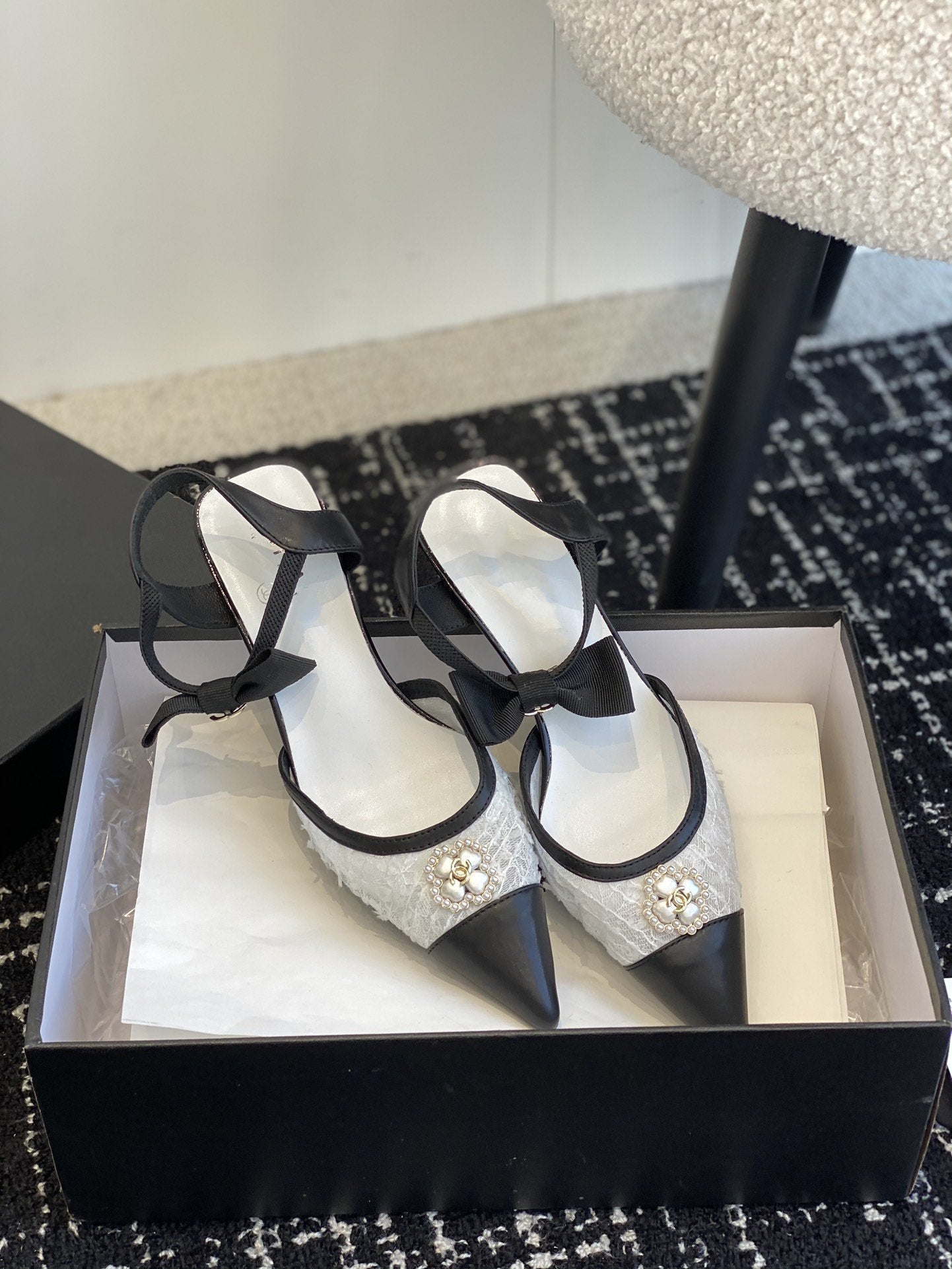 slingbacks 45 white tweed black lambskin