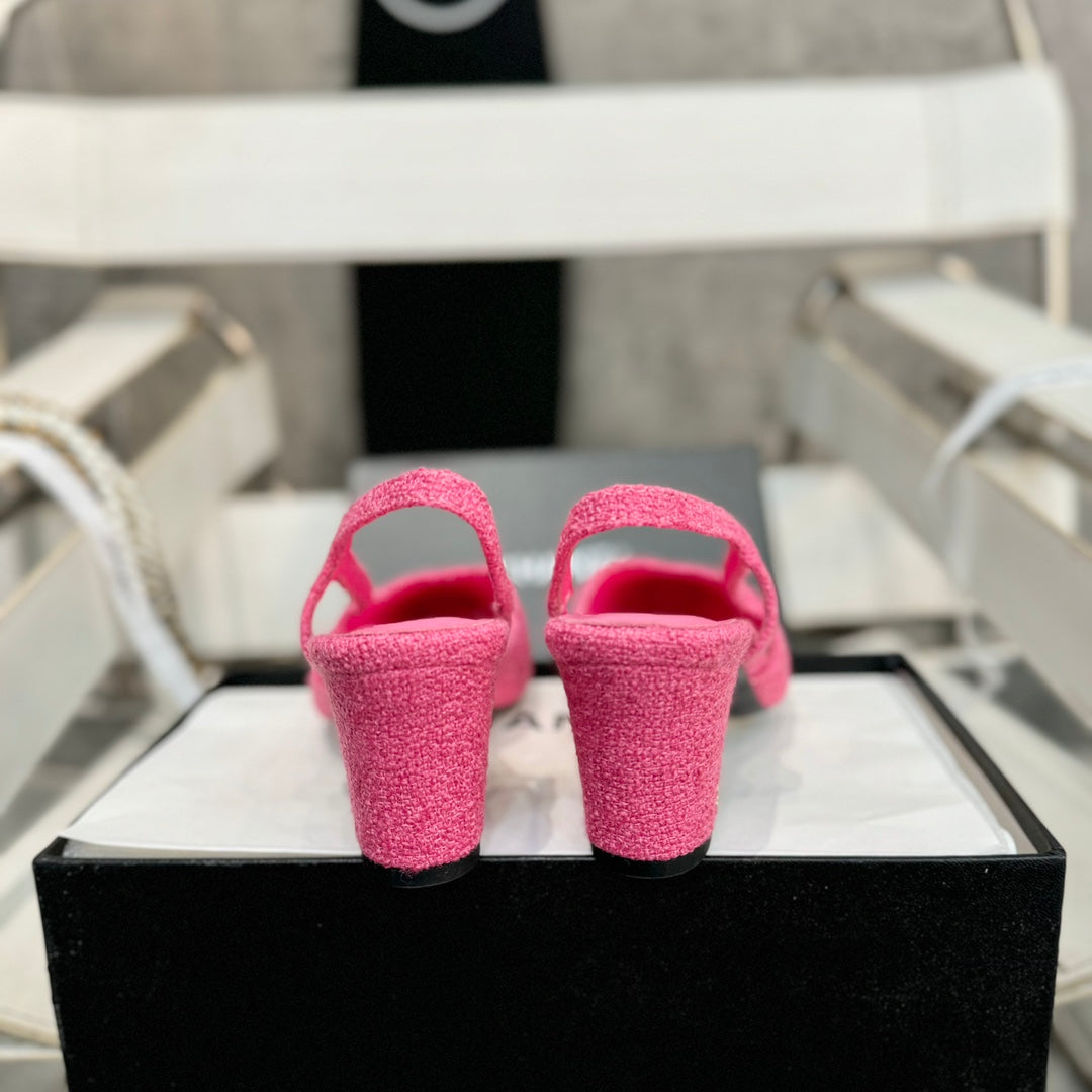 slingbacks 65 pink tweed black patent calfskin