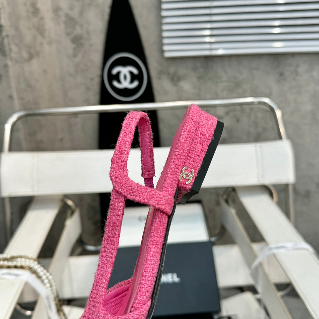 slingbacks flat pink tweed black patent calfskin