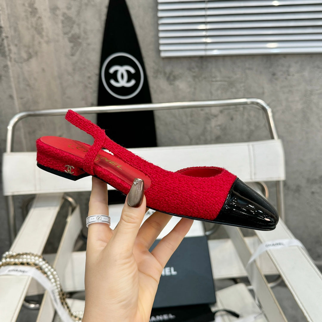 slingbacks flat red tweed black patent calfskin