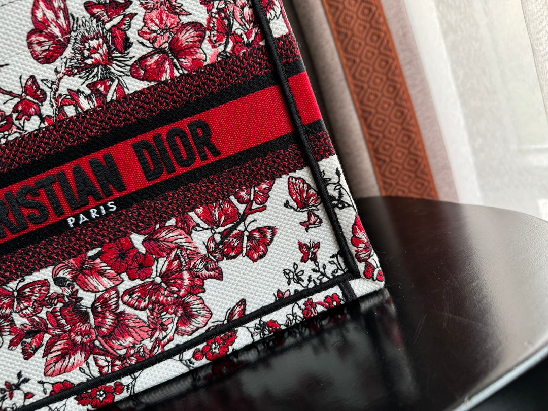 Small CD Book Tote 26.5cm White and Red Heart Butterfly Embroidery