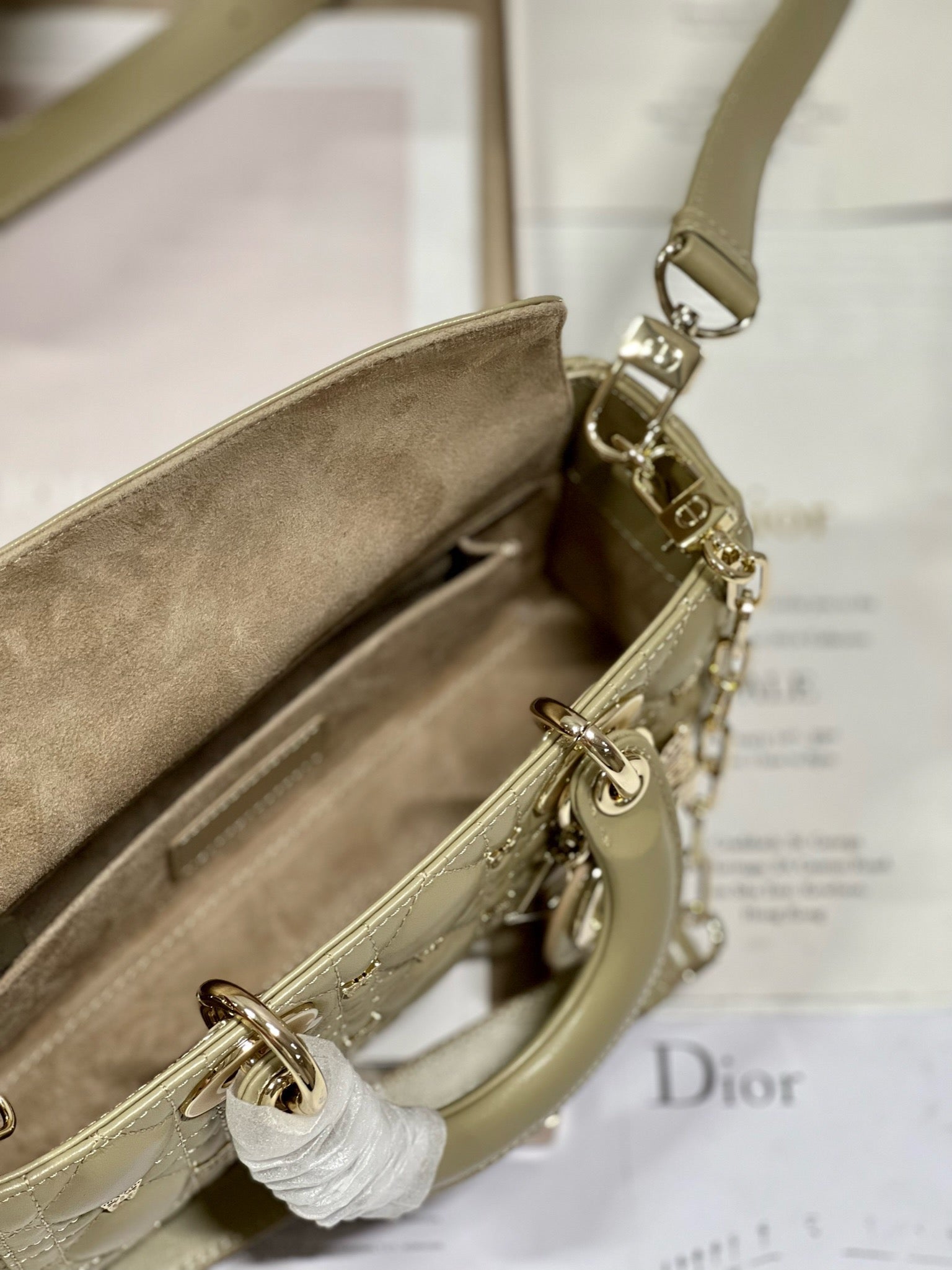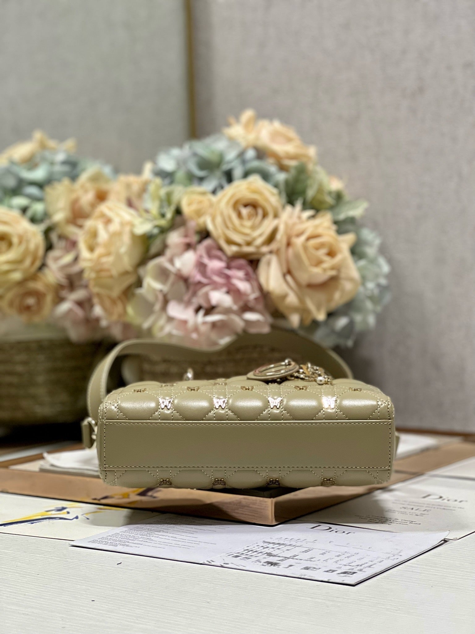 SMALL LADY D-JOY 22 BUTTERFLY STUD OLIVE LAMBSKIN