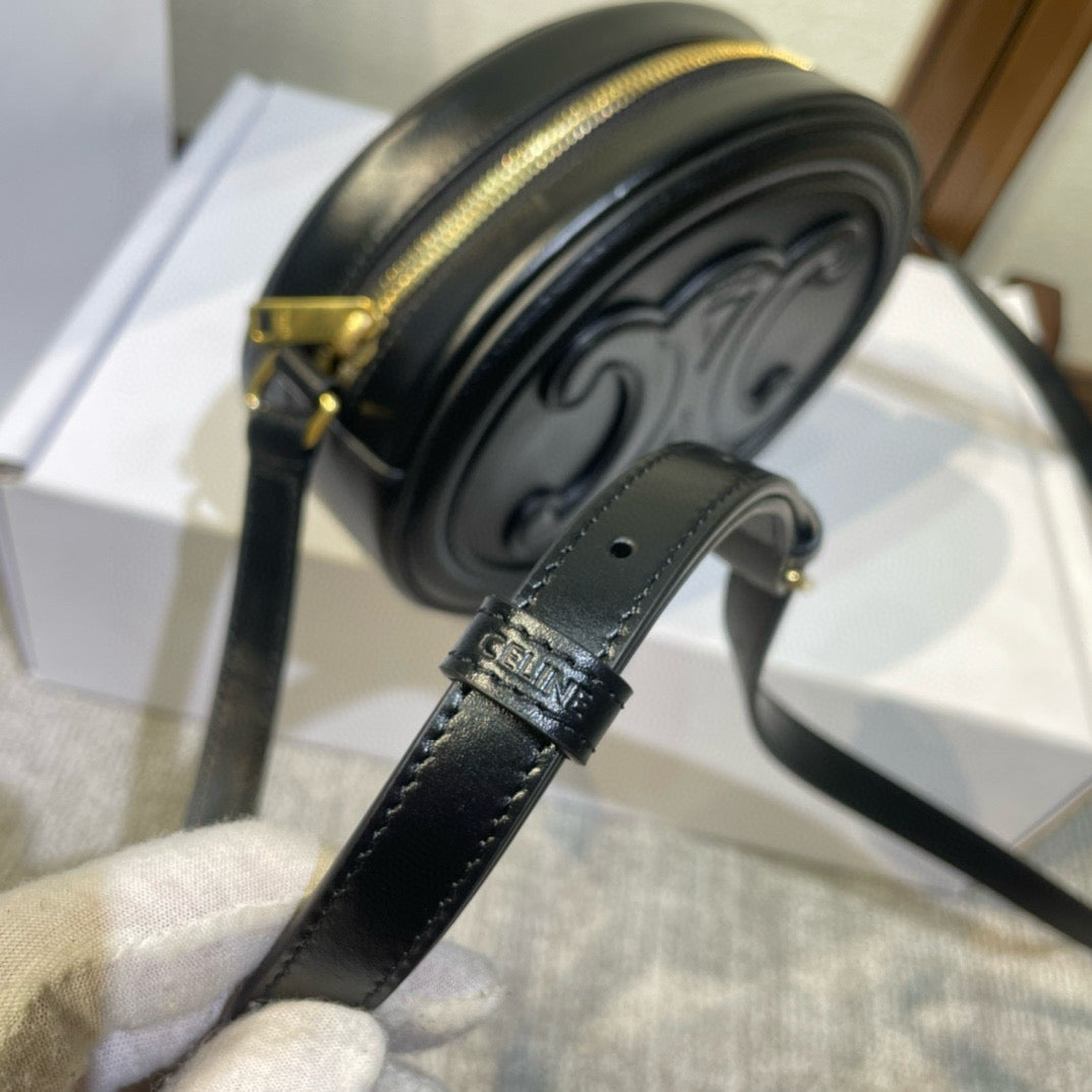 SMOOTH CALFSKIN 20 OVAL CINNAMON BLACK BAG