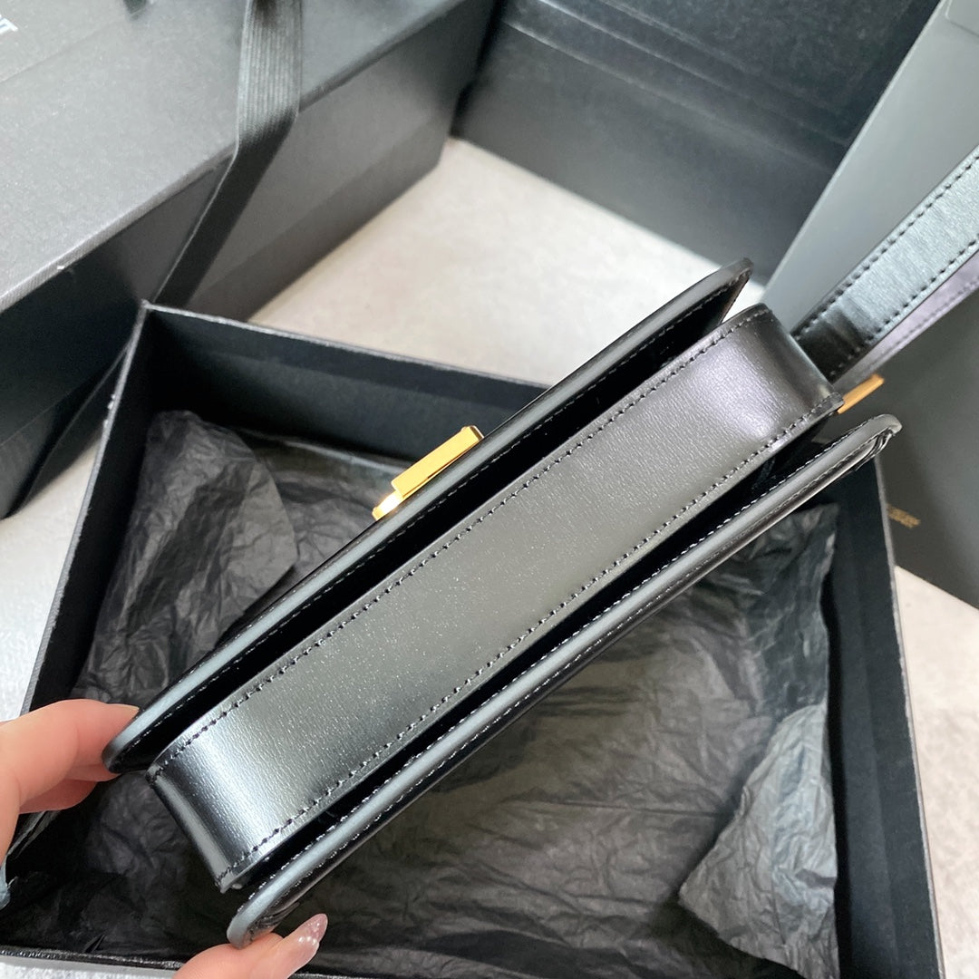 SOLFERINO SMALL SATCHEL 19 IN BLACK CALFSKIN GOLD LOGO