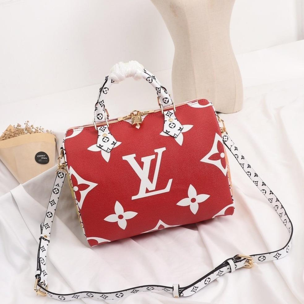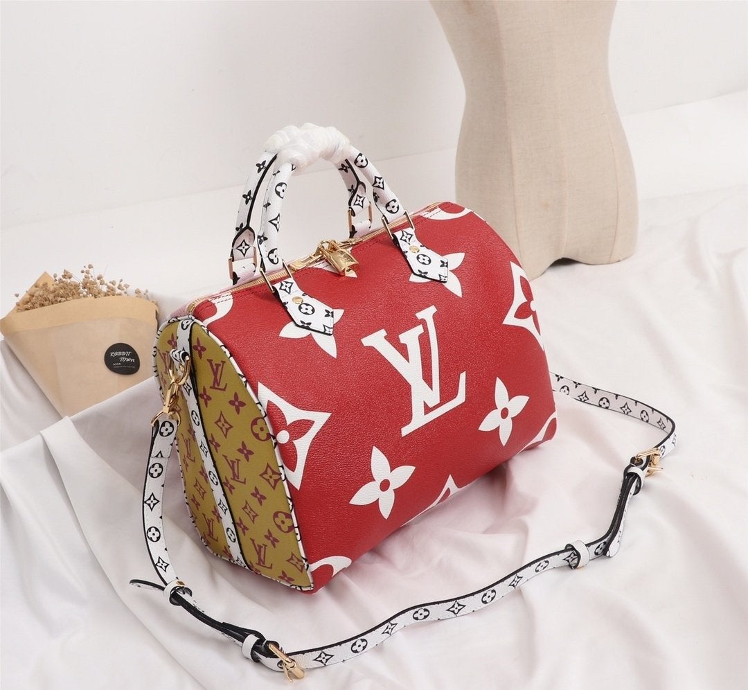 SPEEDY BANDOULIERE 25 RED WHITE GIANT MONOGRAM CANVAS