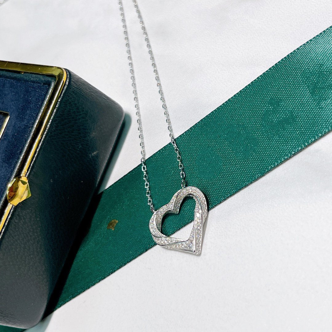 SPIRAL HEART SILHOUETTE PAVED SILVER DIAMOND NECKLACE