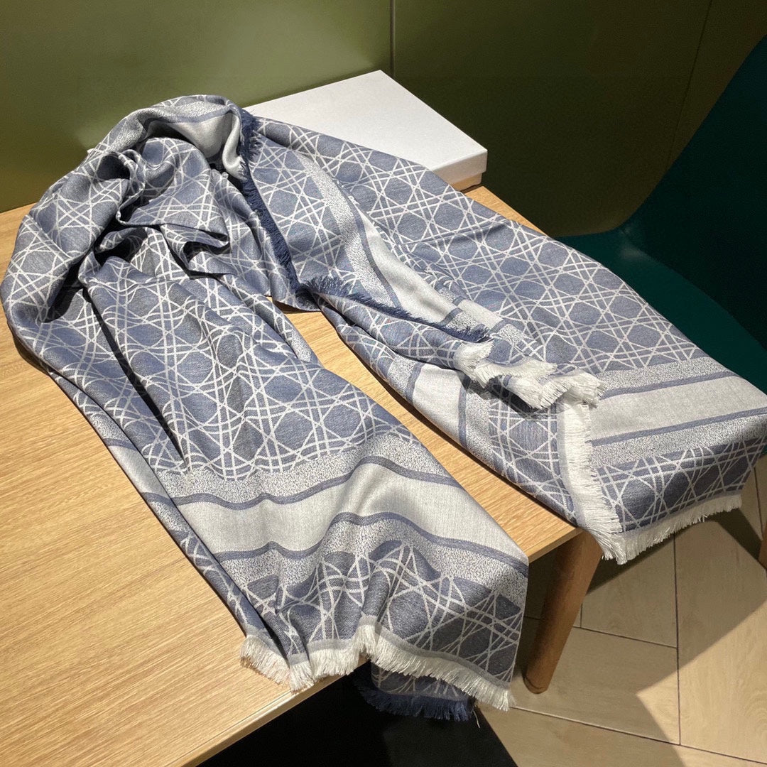 SQUARE SCARF 140 CM IN AEGEAN BLUE MIX WHITE WOOL AND SILK 415455