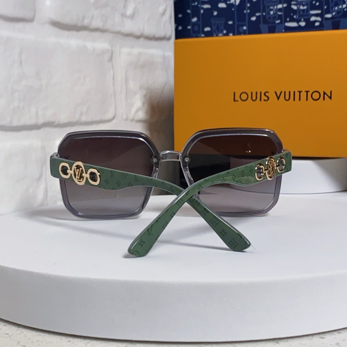 SQUARE SUNGLASSES 573318 IN GREEN ACETATE GREY SMOKE LENS