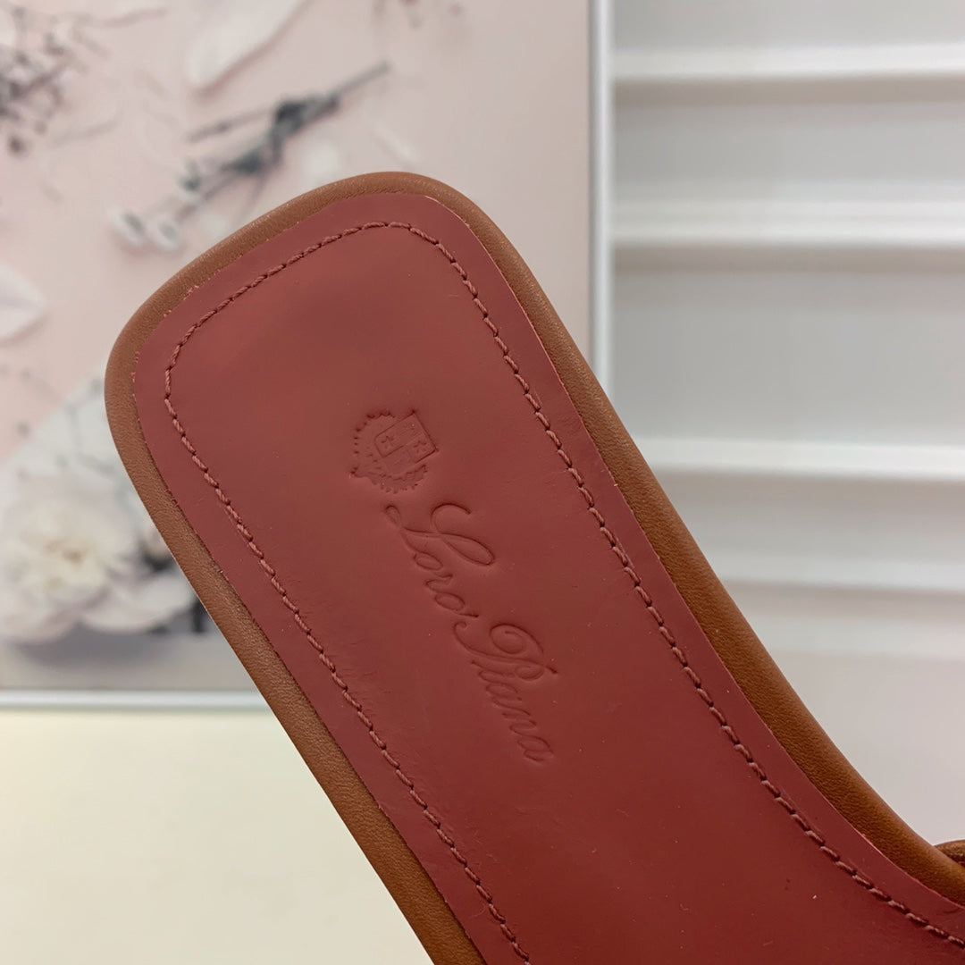 Suitcase Stripe Flat Sandals Brown Maroon Leather