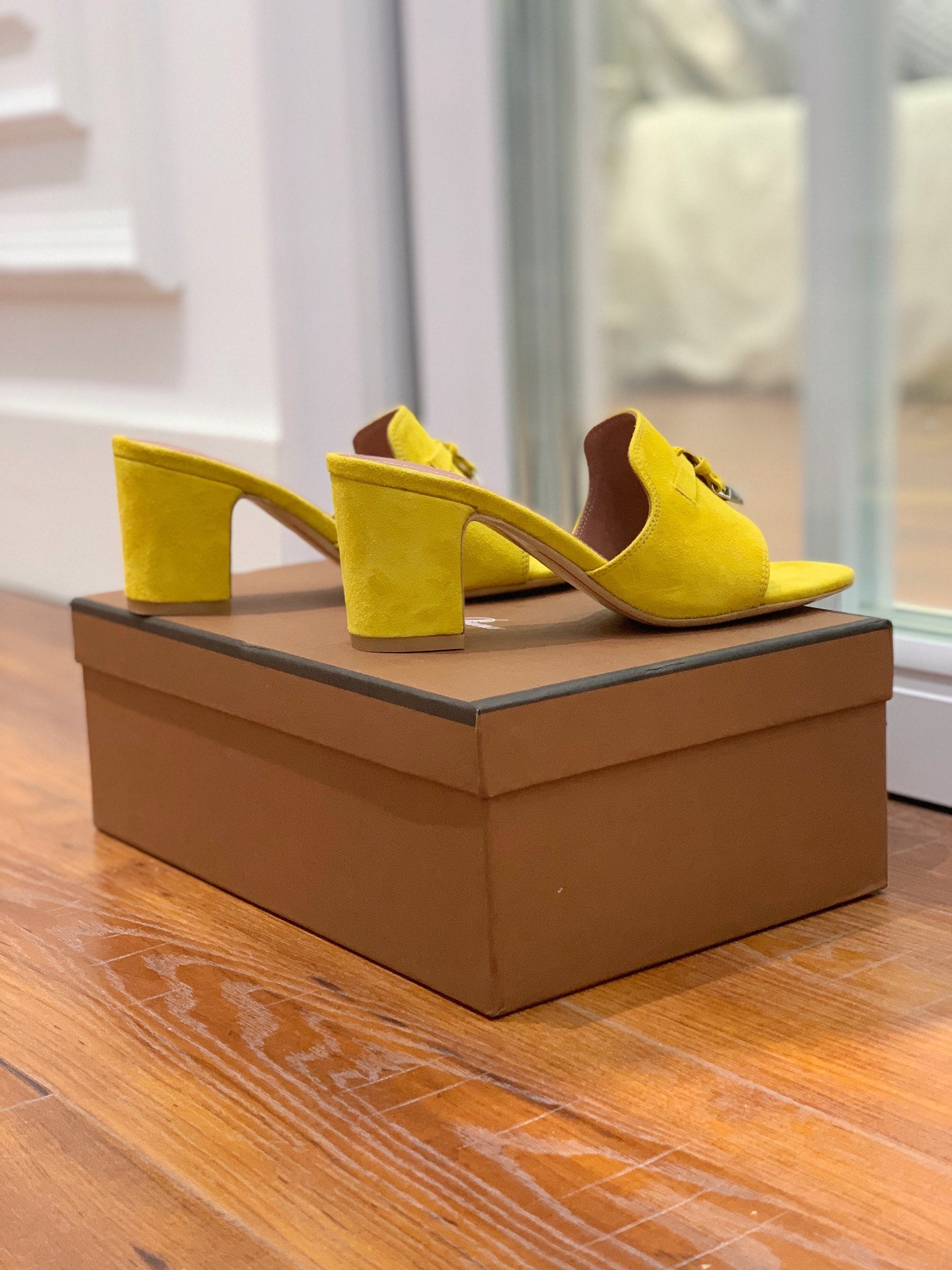 Summer Charms Mules 80 Yellow Suede Pink Lambskin