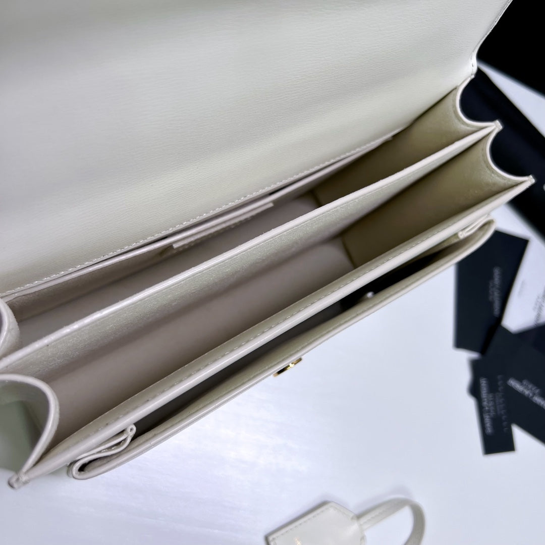 SUNSET MEDIUM 22 IN WHITE CALFSKIN GOLD HARDWARE