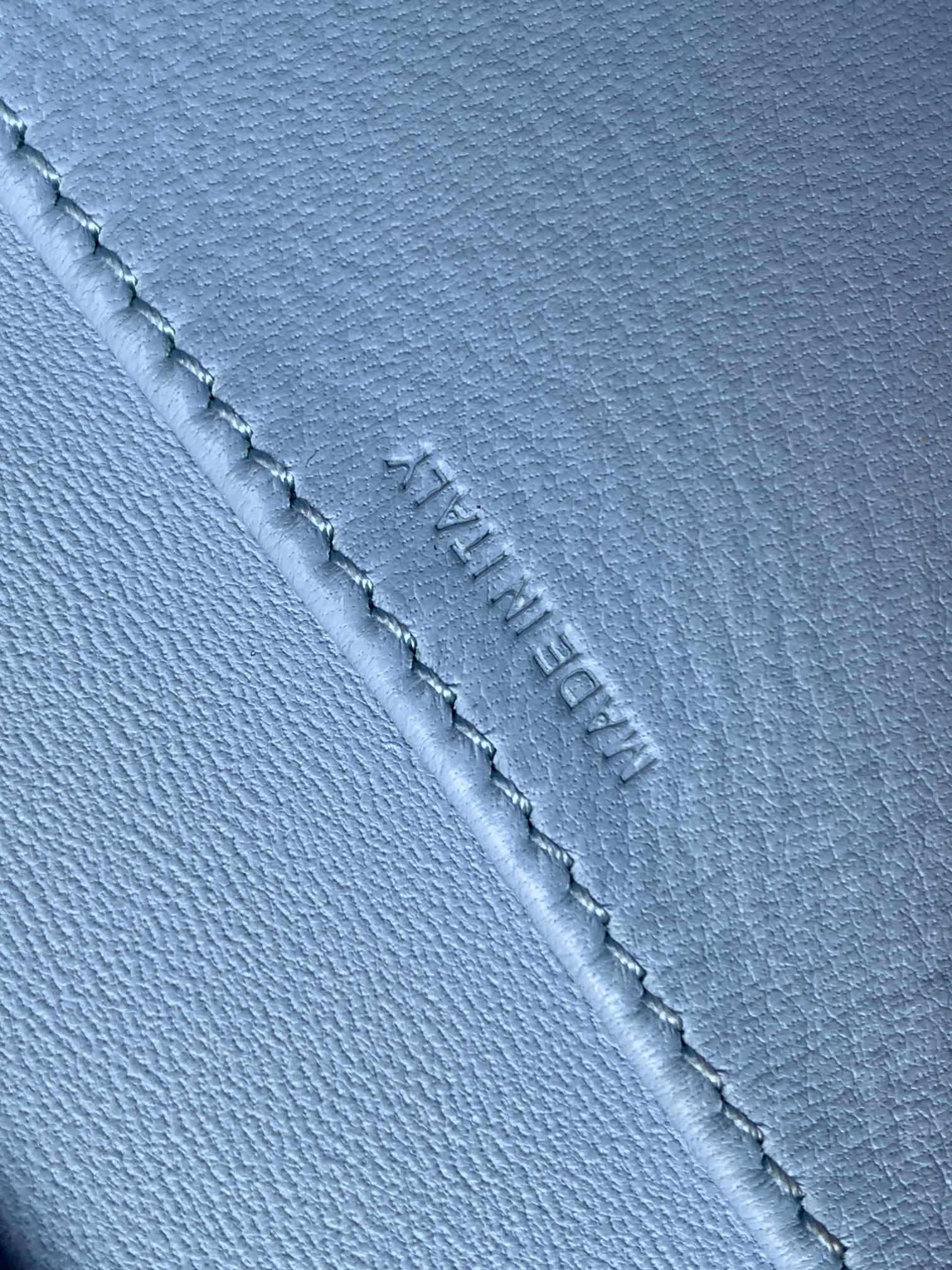 - Color: Sky blue, Gold hardware