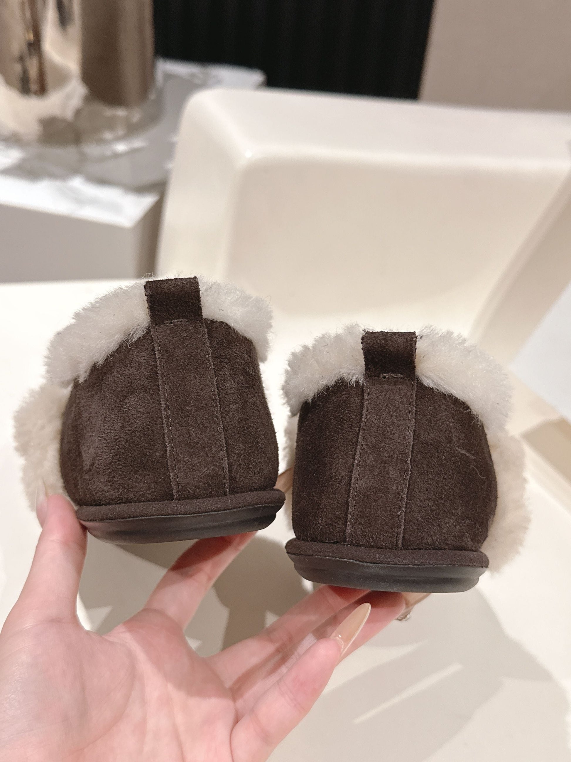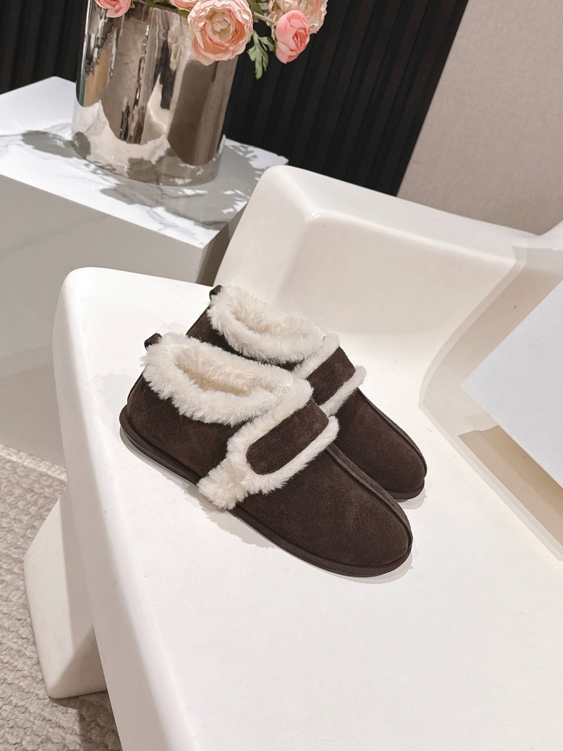 The Row 2025 Furry Shoe Dark Brown White Suede Wool 560591