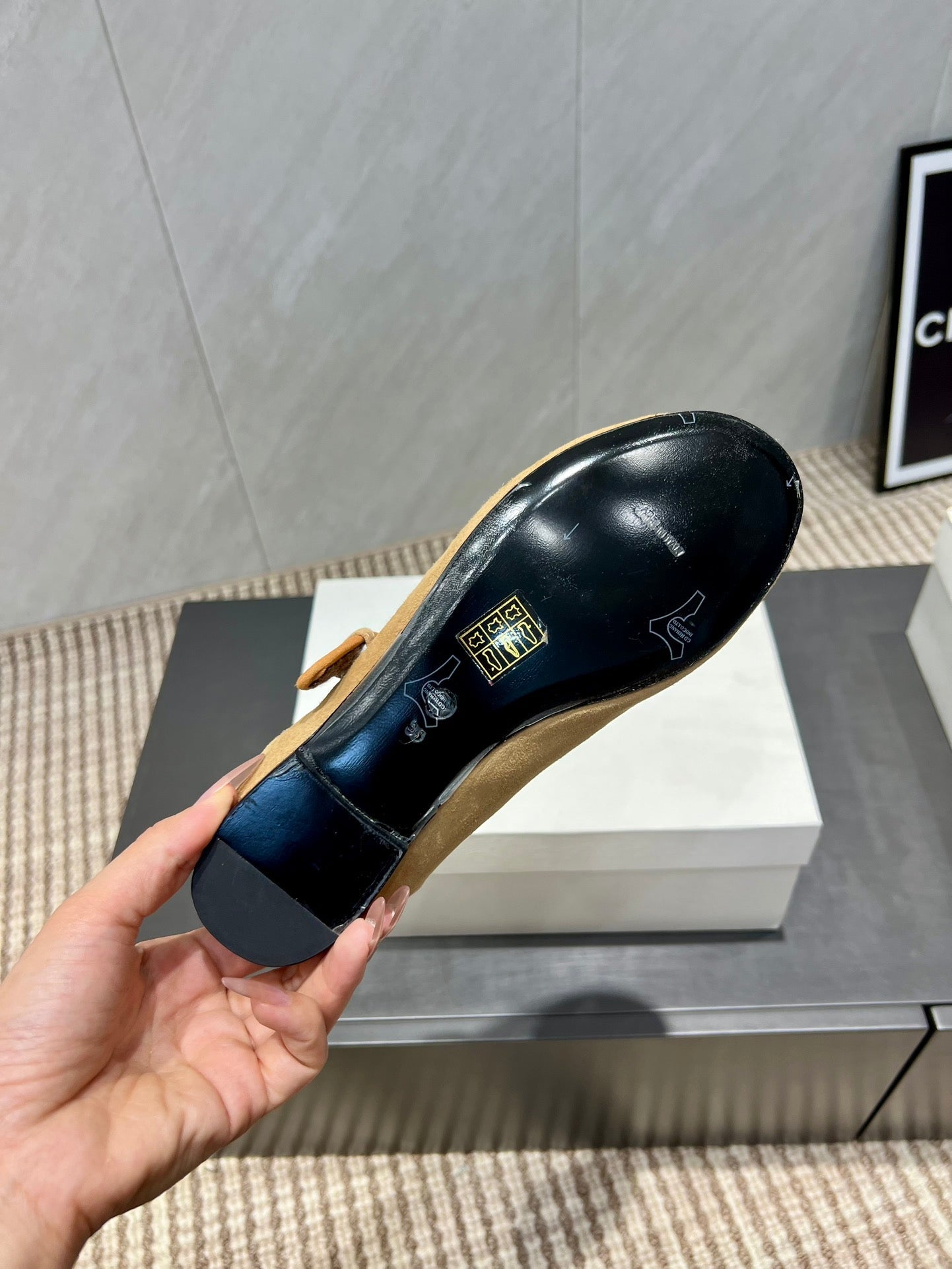The Row 2025 Round Toe Ballet Flat Tan Suede Fleece 540489