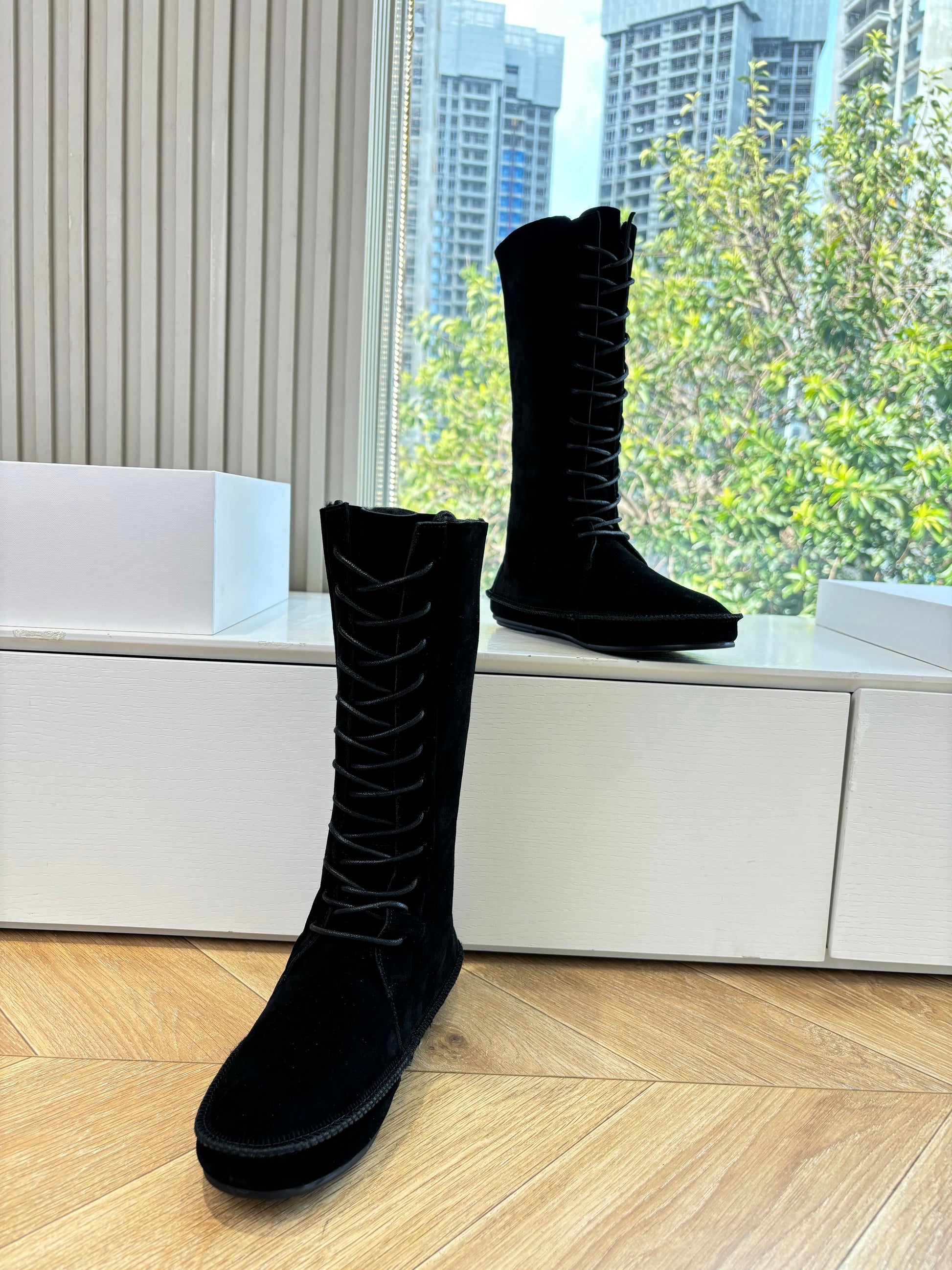 The Row 2025 Tyler Lace-up Boot Black Suede 549347
