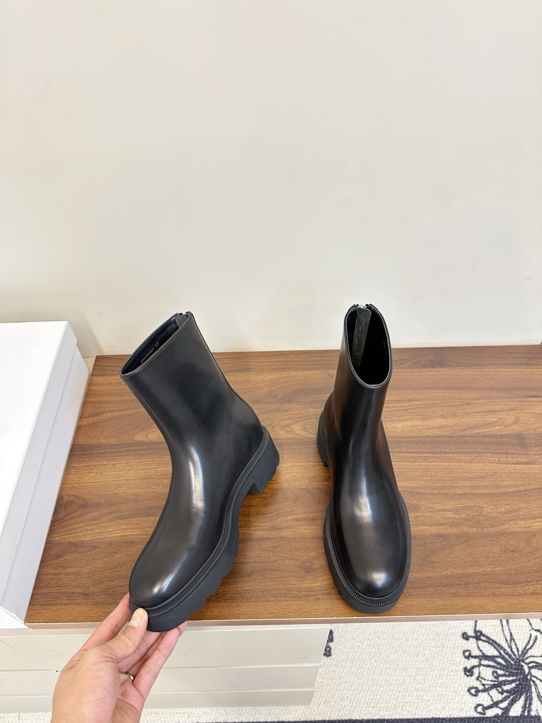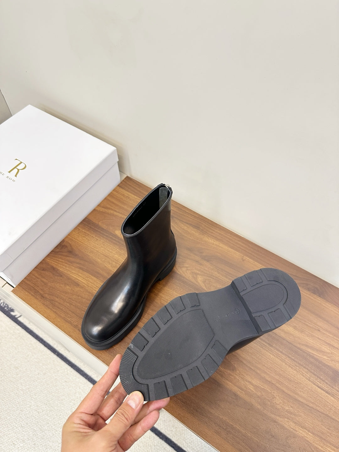 The Row 2025 Zipper Combat Boot Black Lambskin 572084
