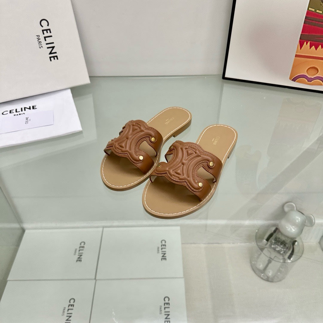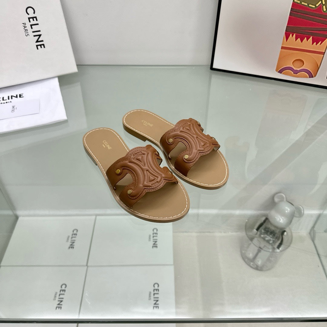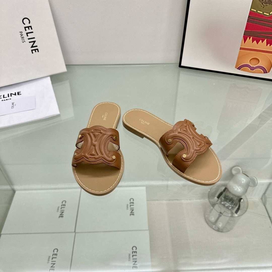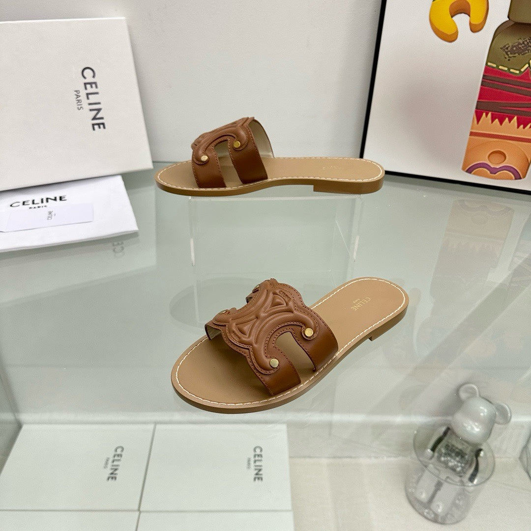 TRIOMPHE MULE IN CALFSKIN DARKBROWN