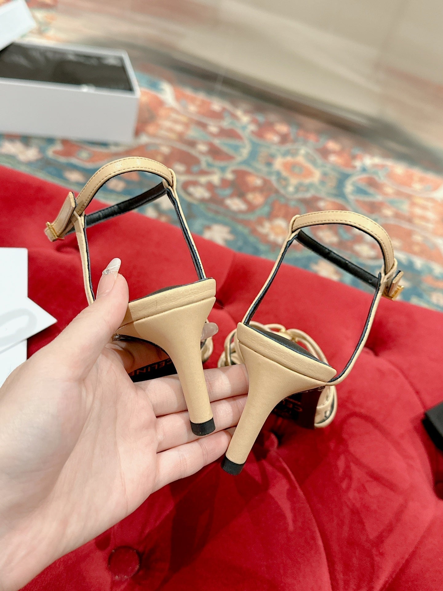 TRIOMPHE SANDAL 85 MM IN PEANUT BROWN LAMBSKIN