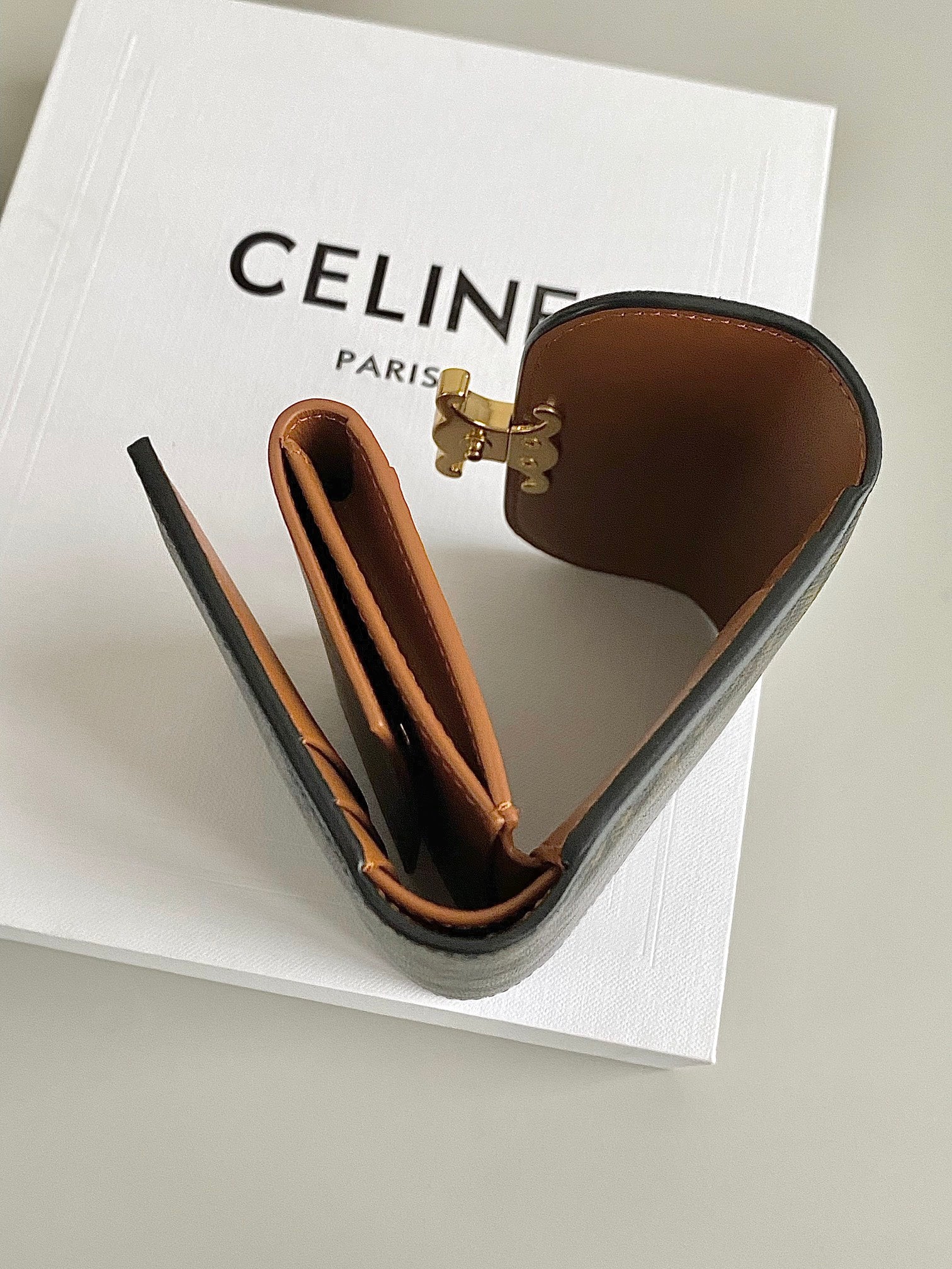 TRIPHOME 10 TRIFOLD WALLET CALFSKIN OLD FLOWER BROWN