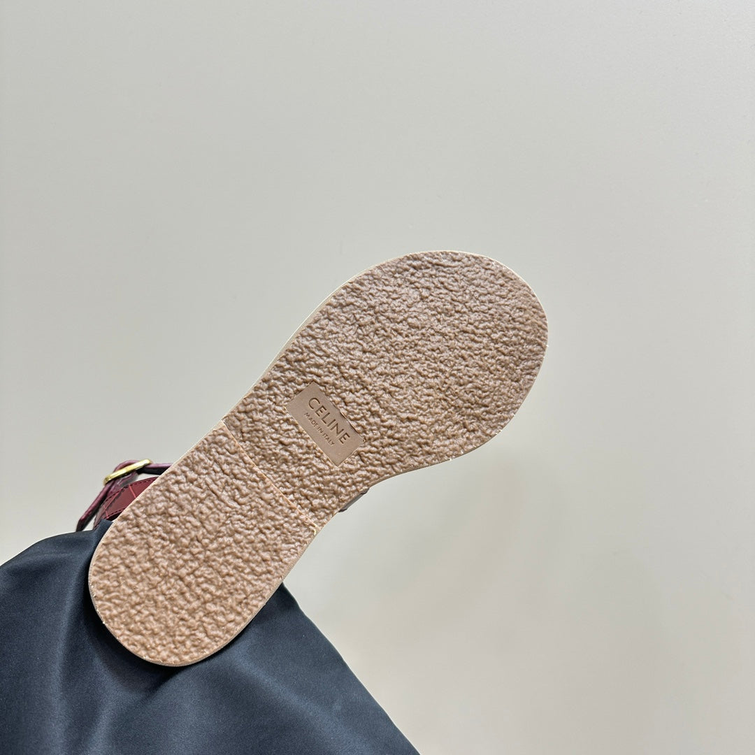 TRIUMPH FLAT SANDALS IN GARNET RED CALFSKIN