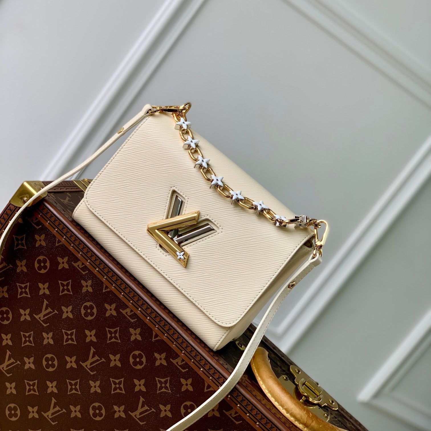 TWIST MM 23CM CREAM EPI GRAINED LEATH